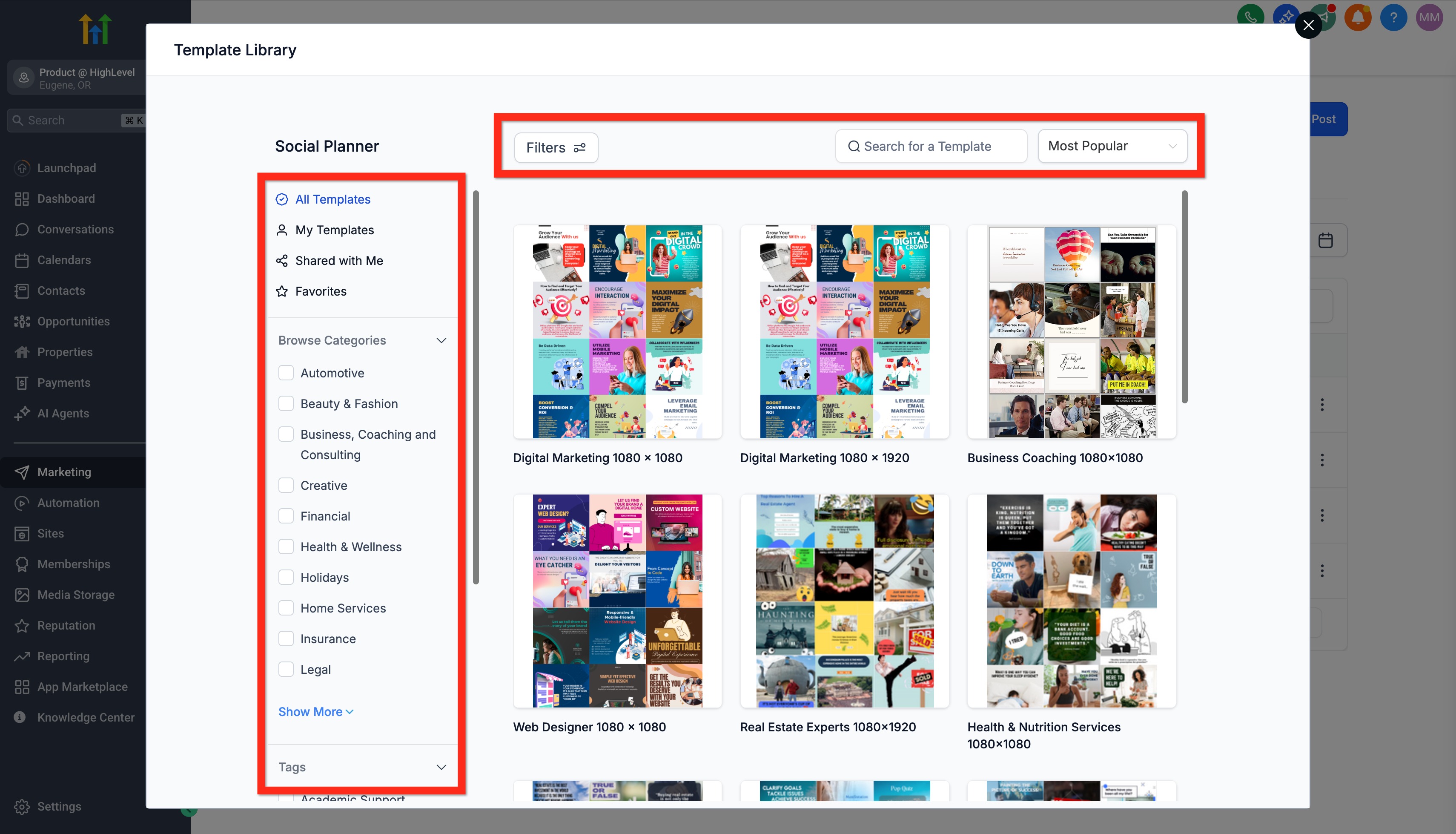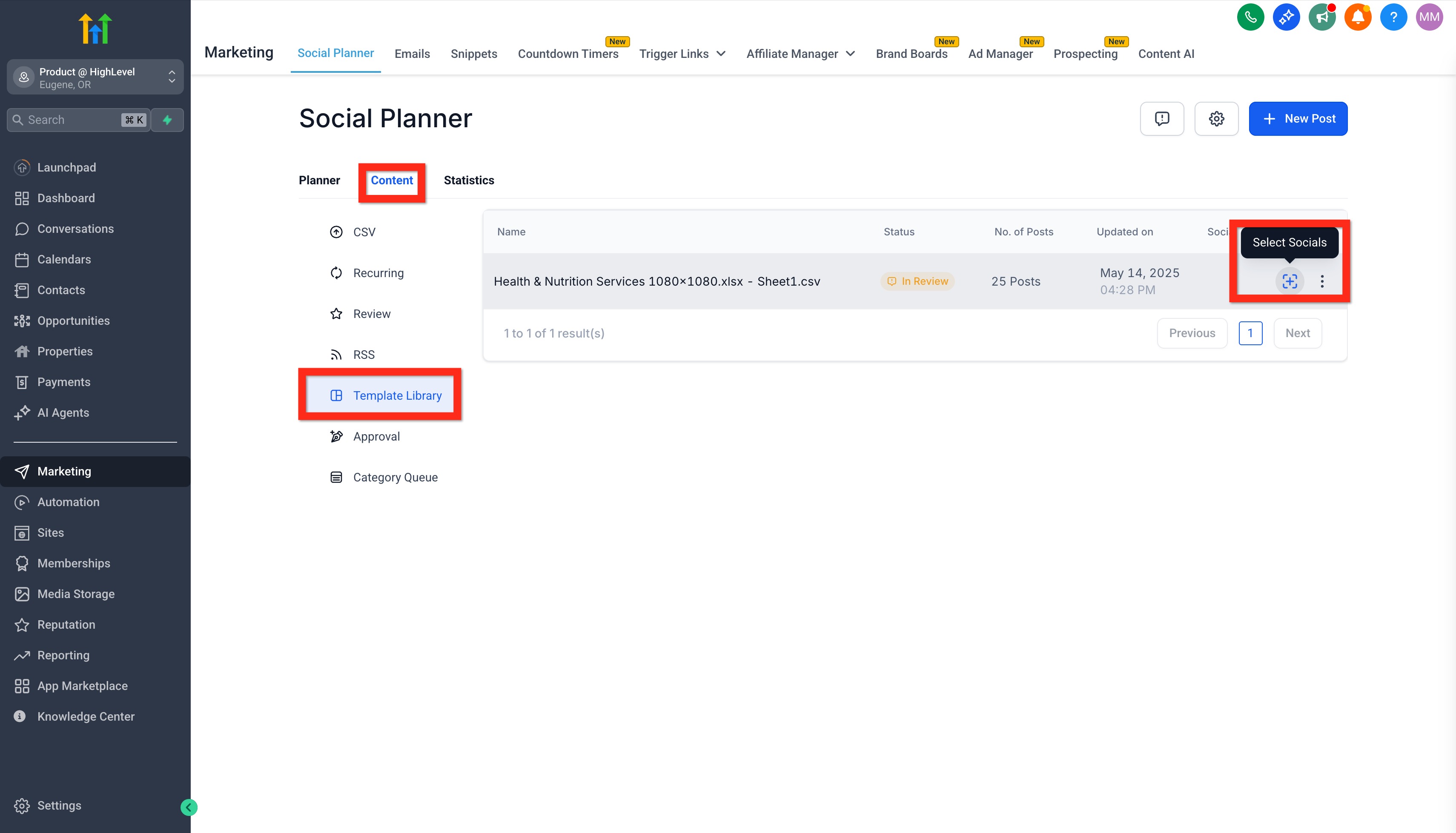 - Navigate to Marketing > Social Planner > New Post > Social Planner Templates.