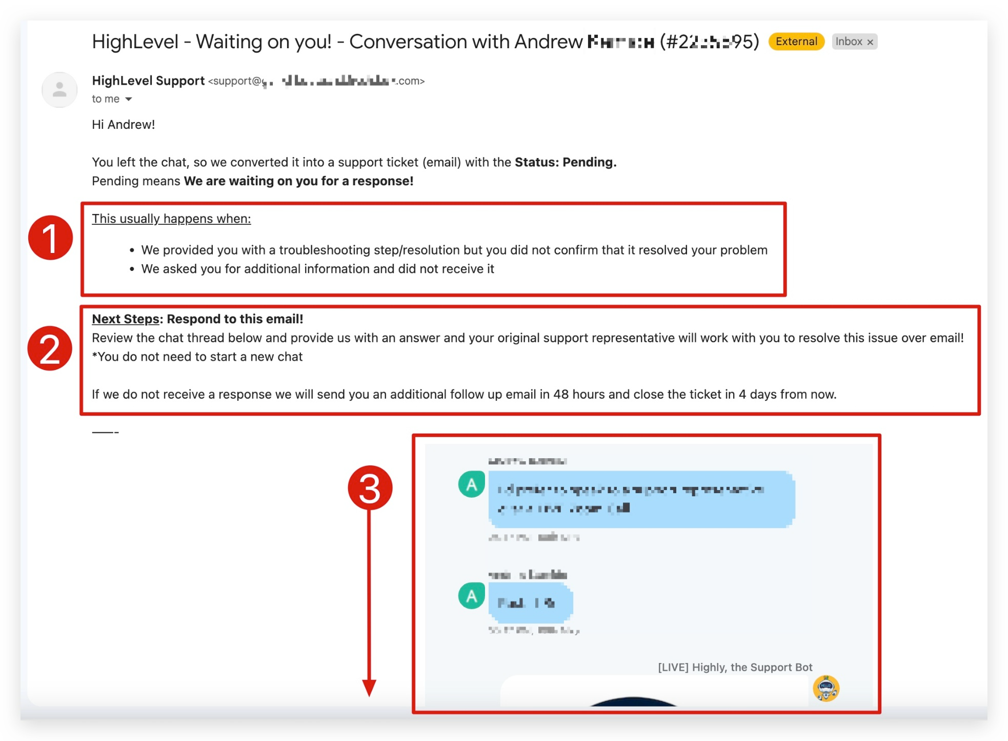 We would like to ask that you respond as soon as possible to any email coming from our team so that we can get your support issue resolved as fast as we can. You're experience in HighLevel is our #1 priority, so we want to make sure any issue you're having are resolved fast so you can get back to growing your business!