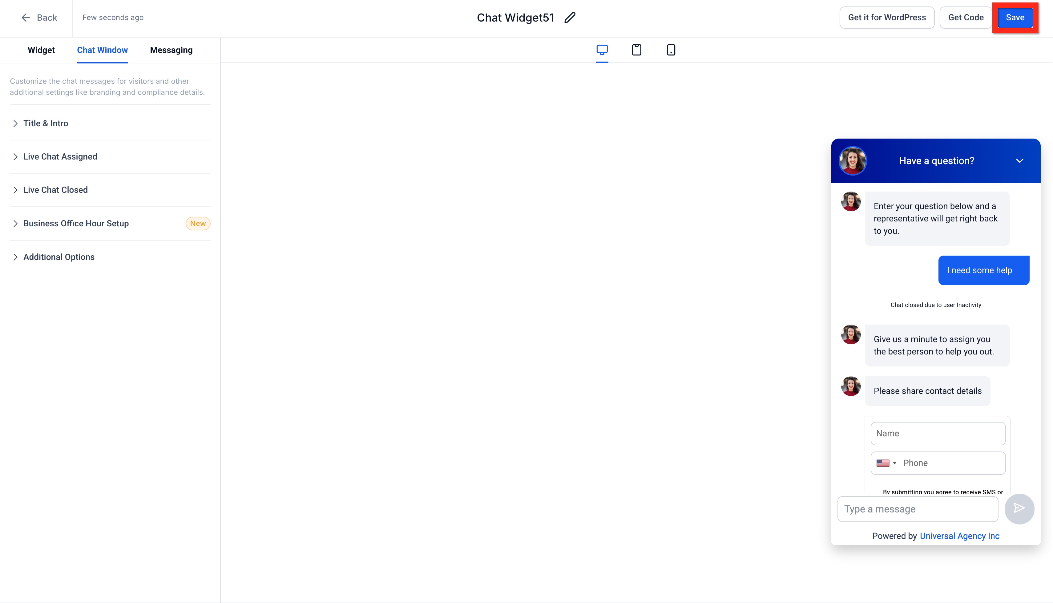 Create Live Chat Widget