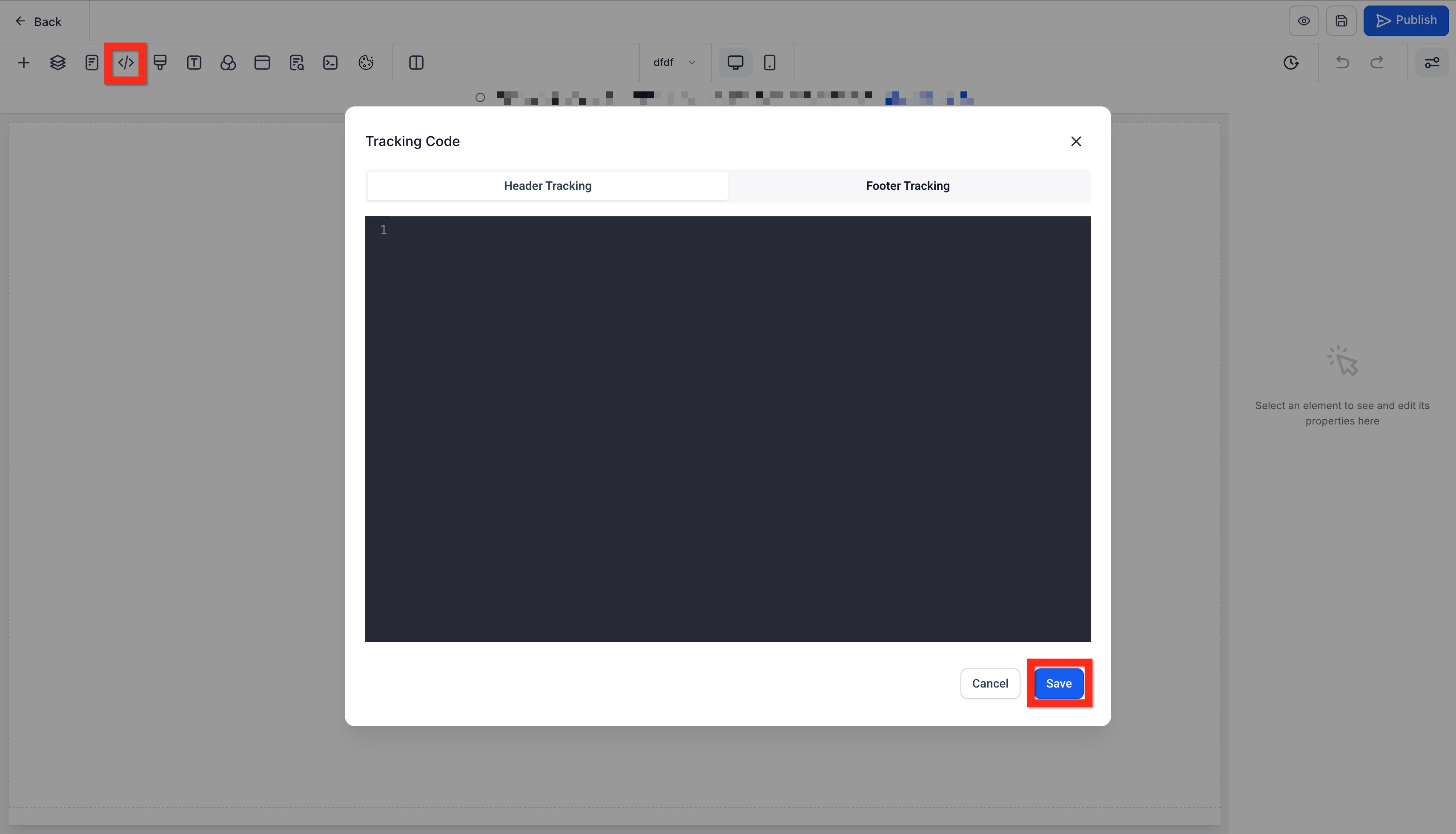 - In the editor, click the Tracking Code icon (