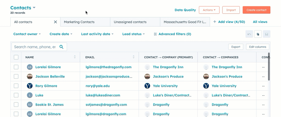 - Contacts and Companies: Navigate to Contacts > Contacts and CRM > Companies. Export data as CSV files.
