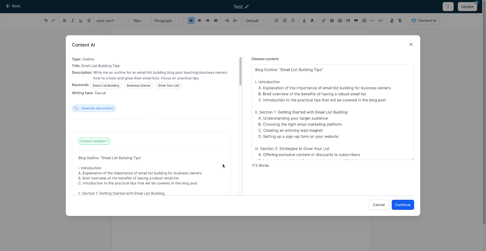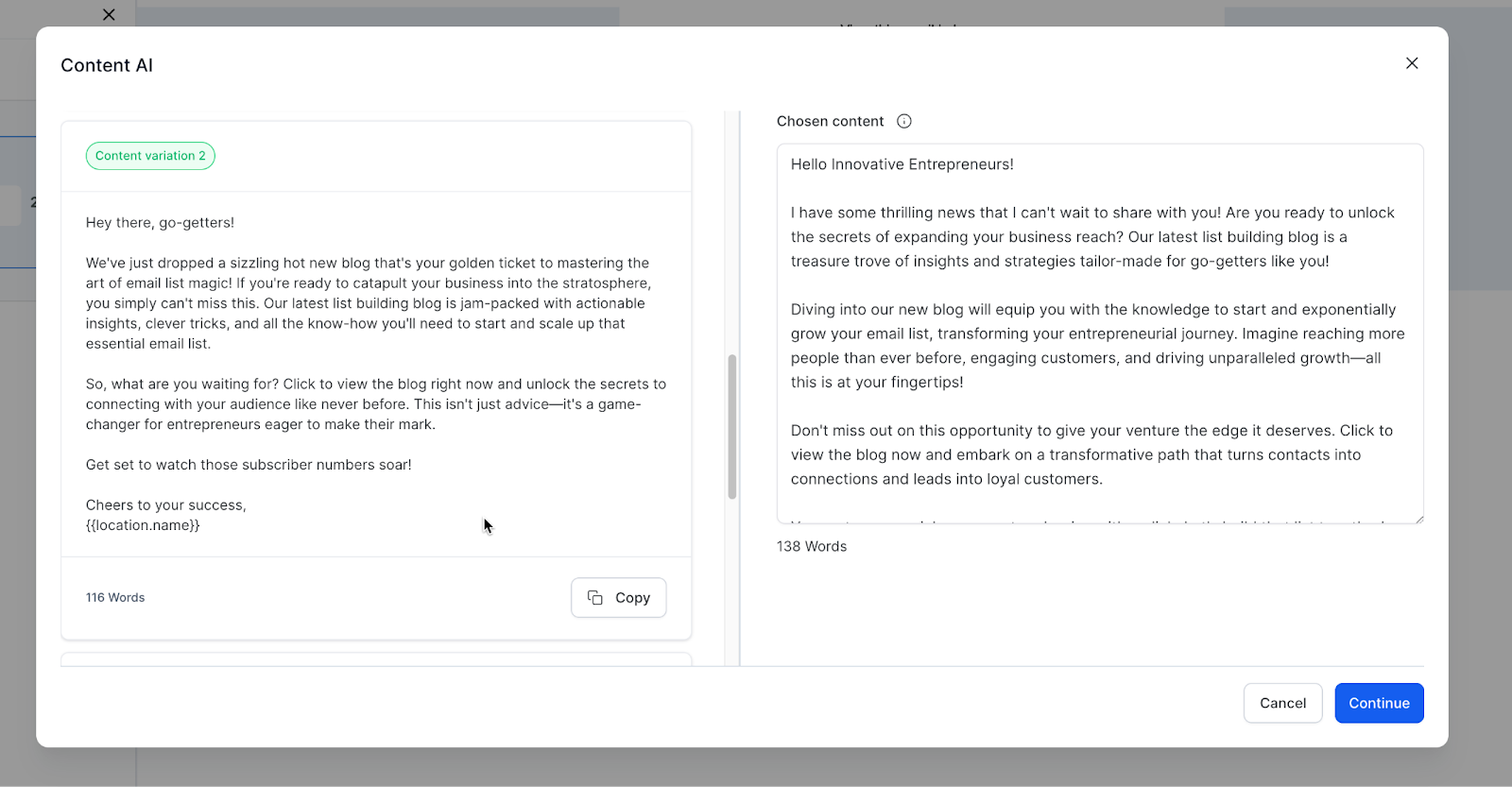 Learn more about Content AI in the Email Builder