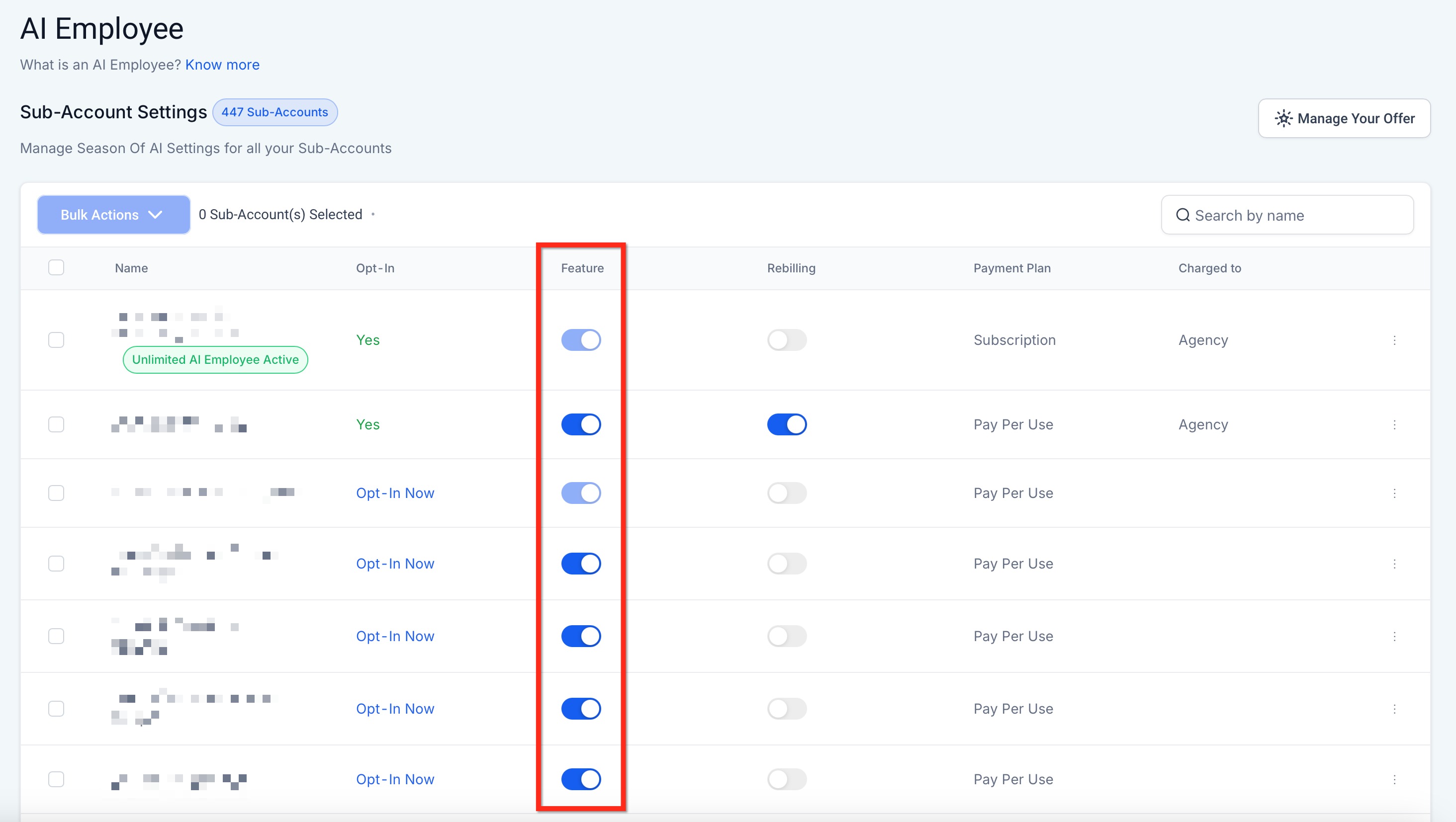 Below are the main feature updates affecting sub-accounts and agencies after the conclusion of the Season of AI promotion.