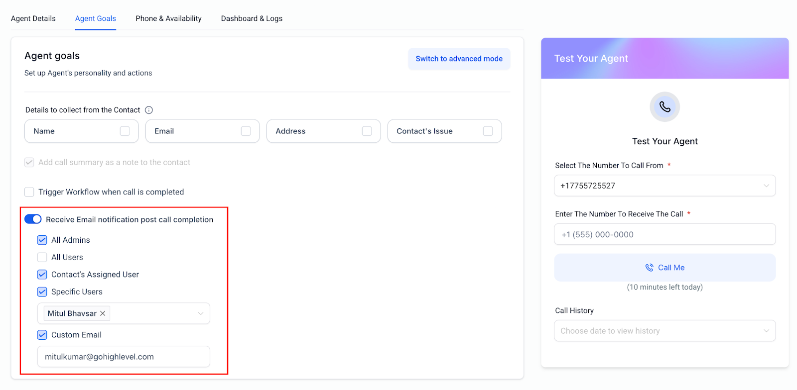We’ve enhanced post-call email notifications to give you full control over who receives them. Previously, notifications were limited to admins and users could only add one additional recipient. Now it’s no longer restricted to admins or a single recipient.