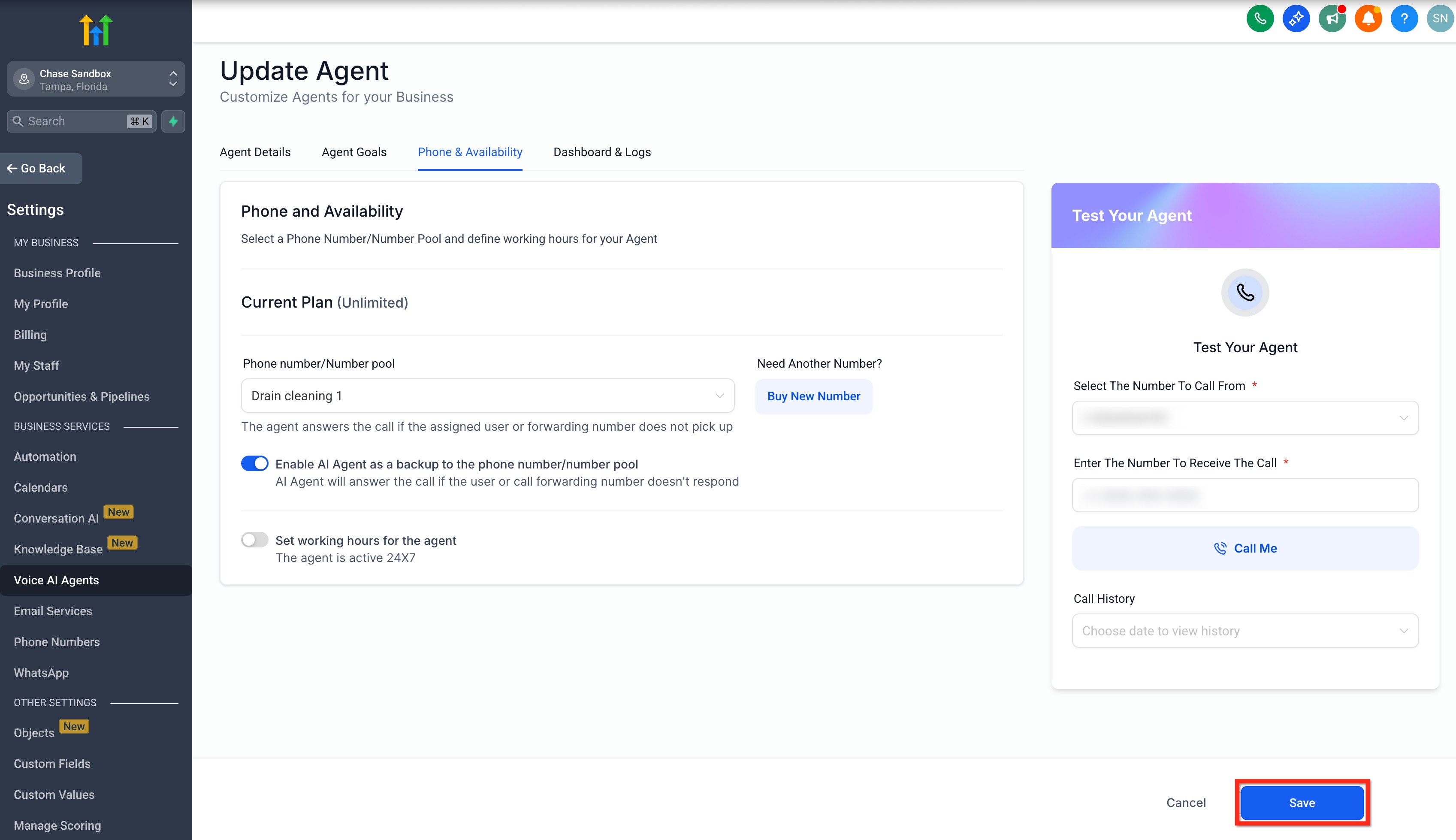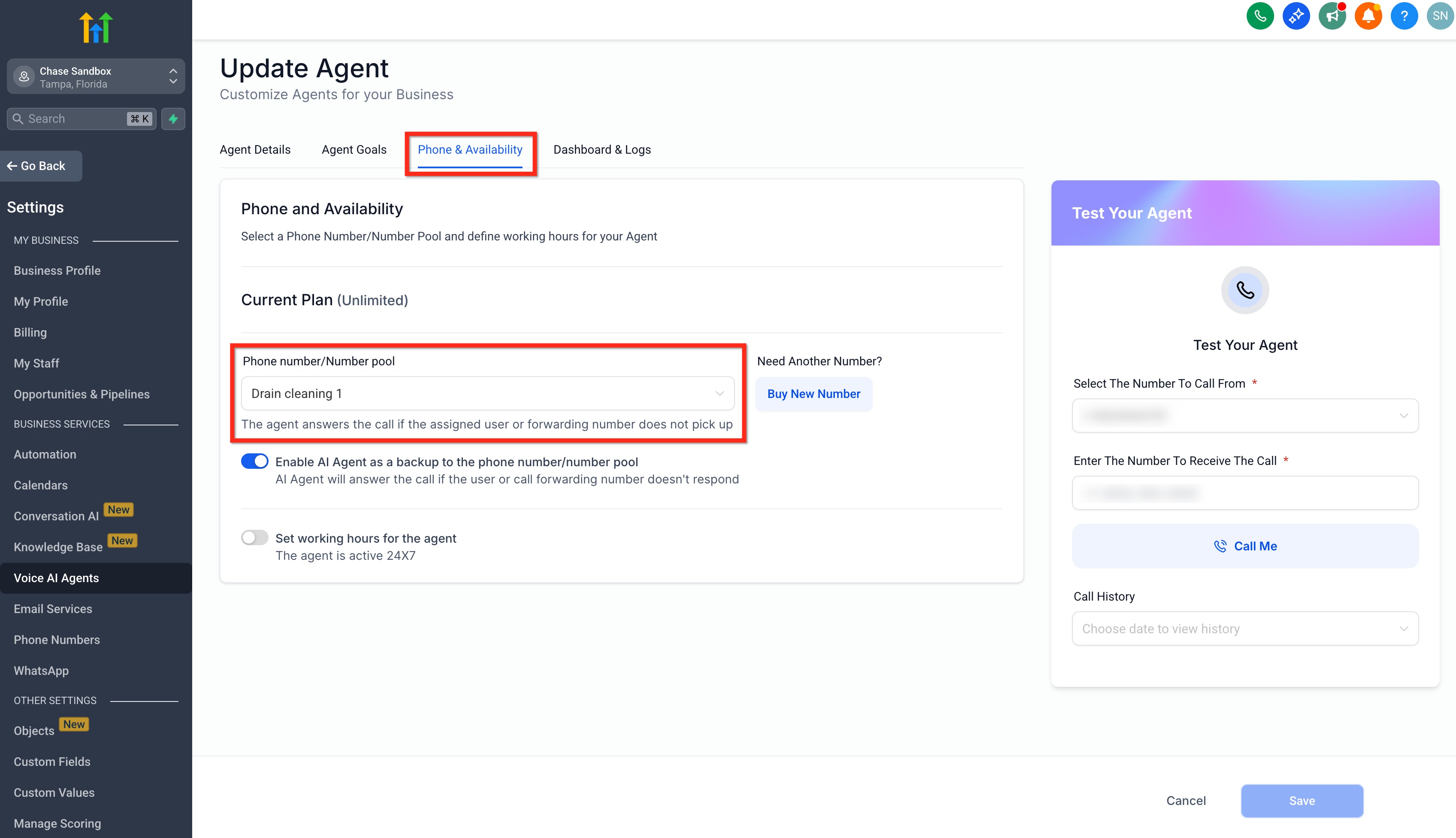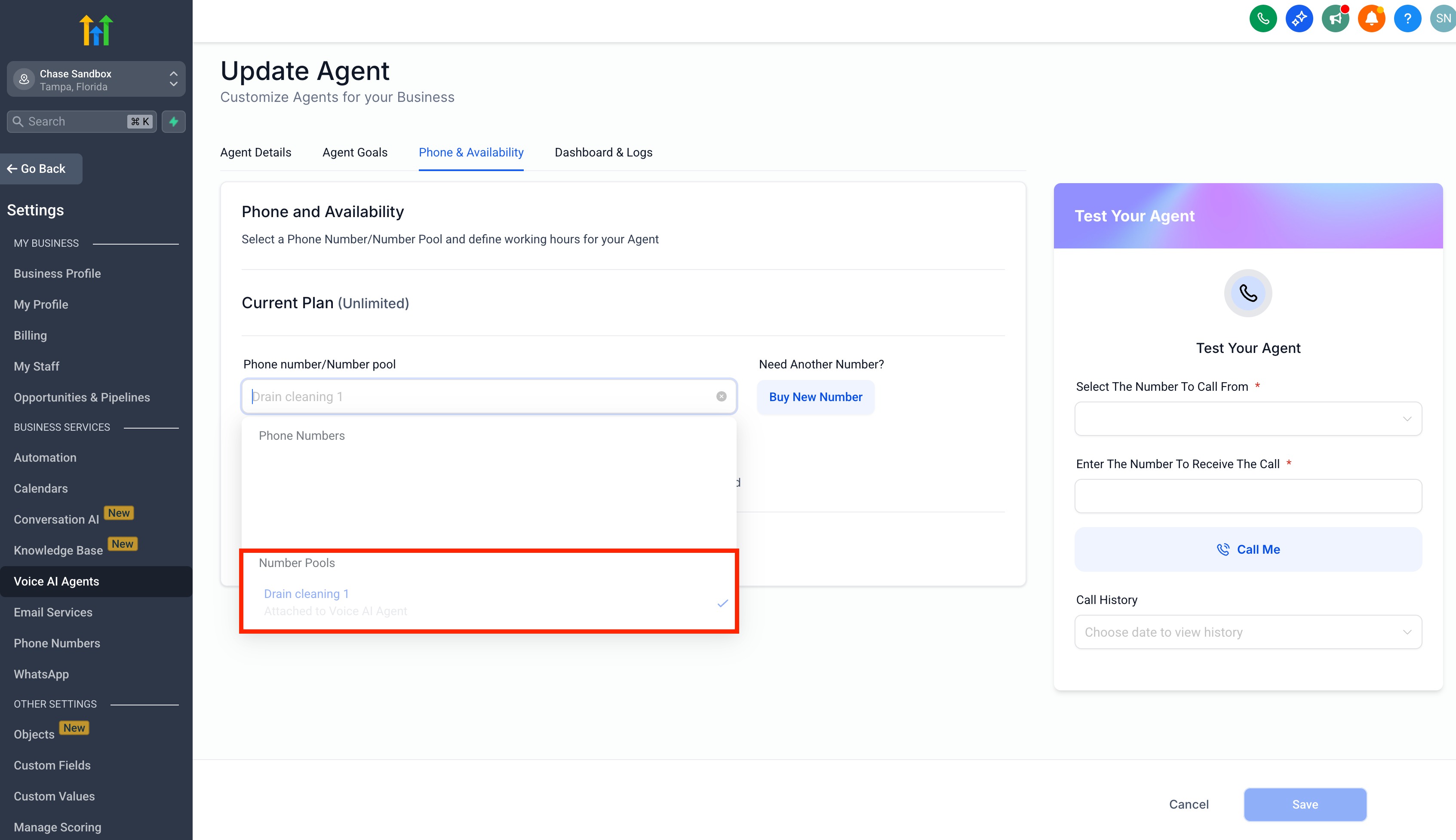 Select the Number Pool you want to assign to this Voice AI Agent.