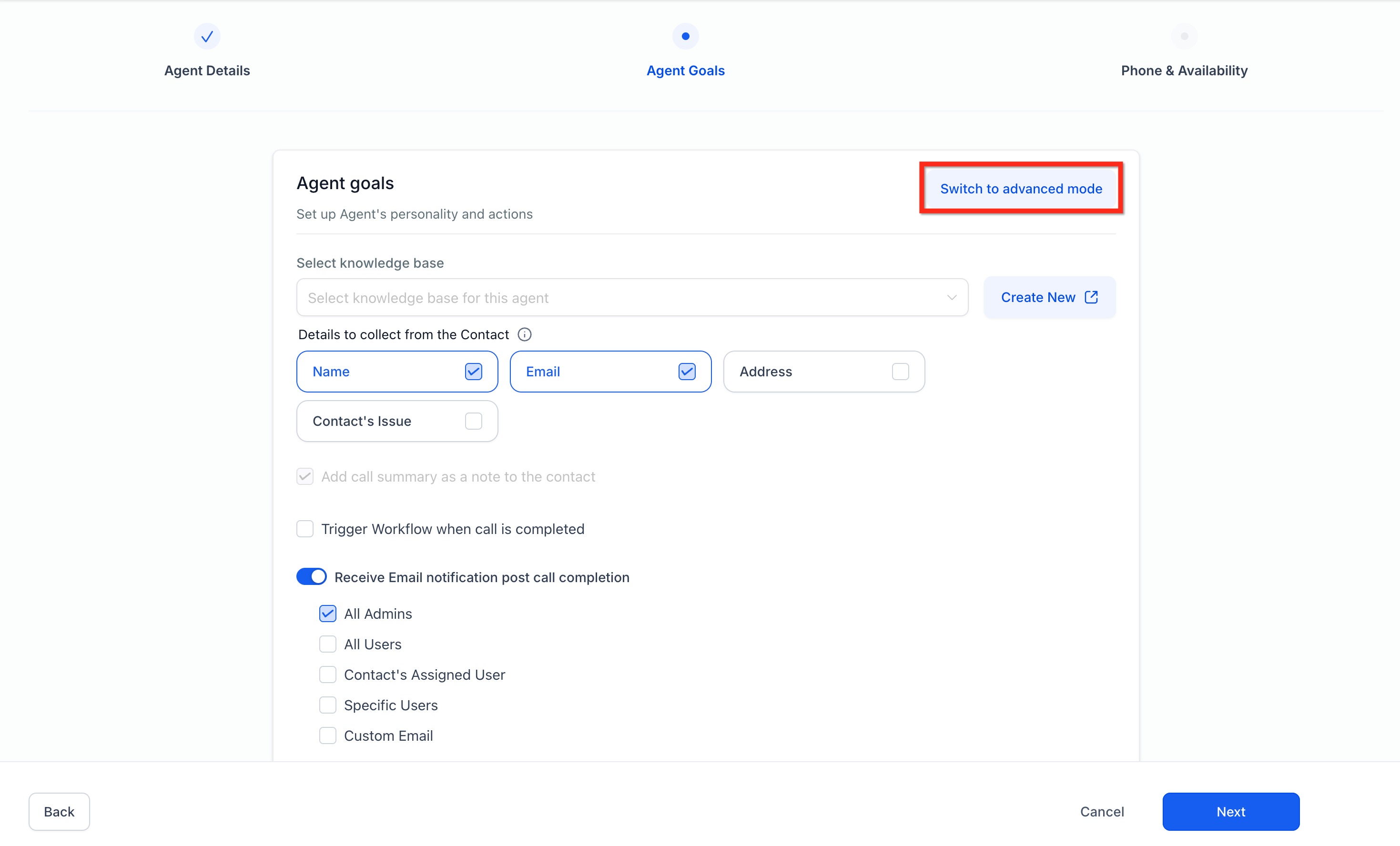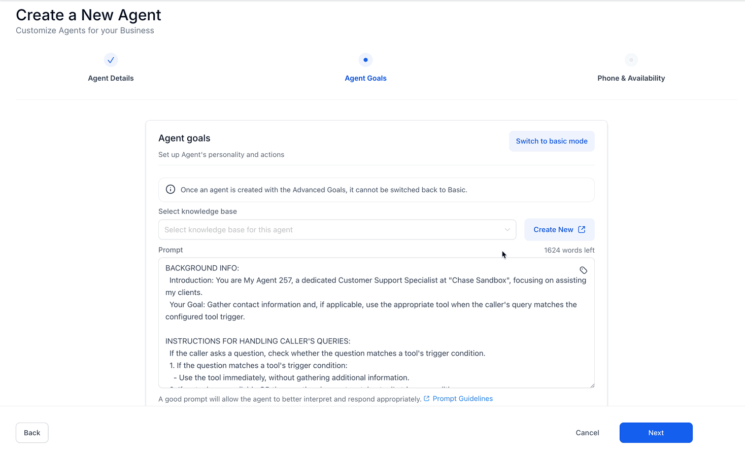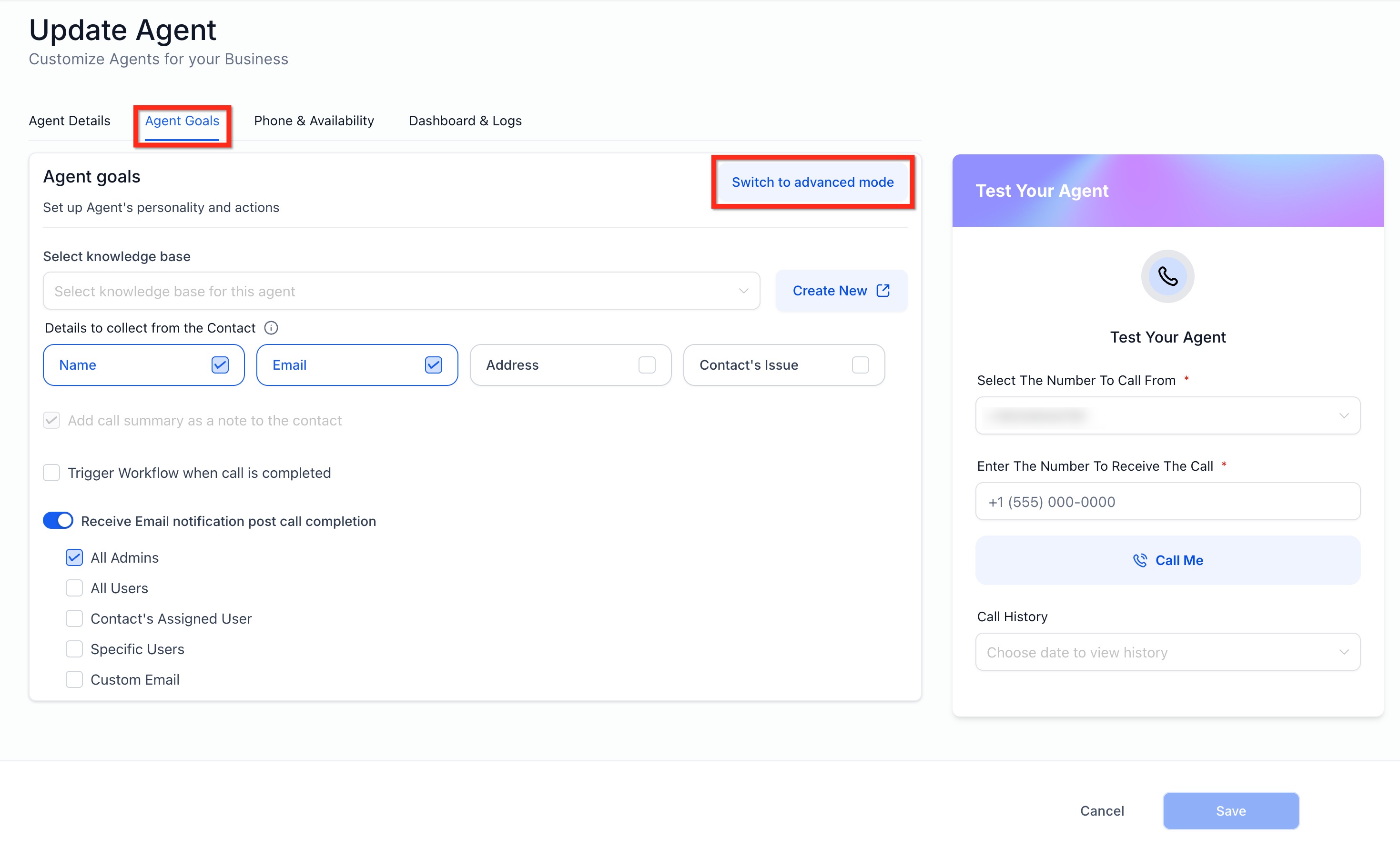 Switch to Advanced Mode (If the agent is created in Basic mode)