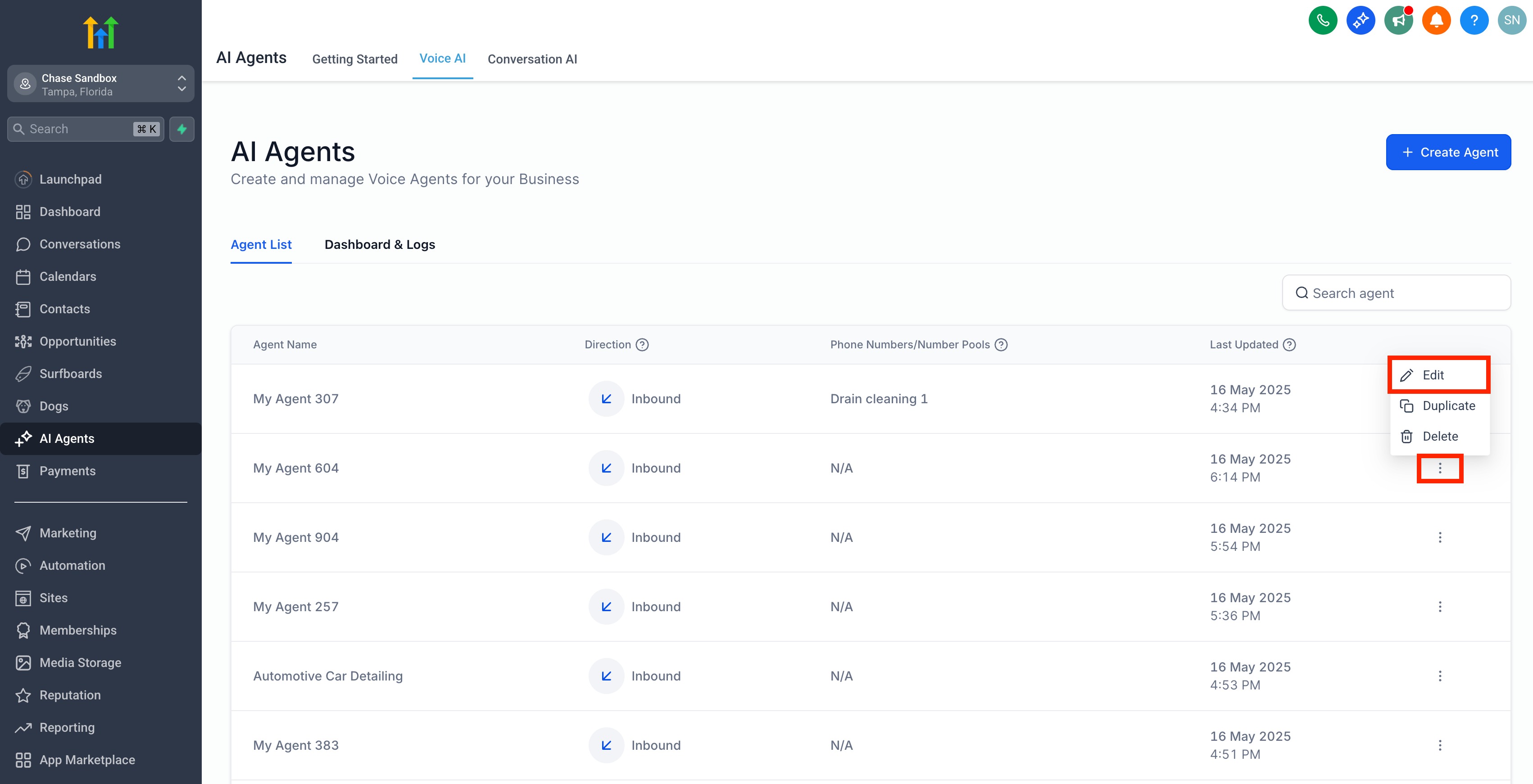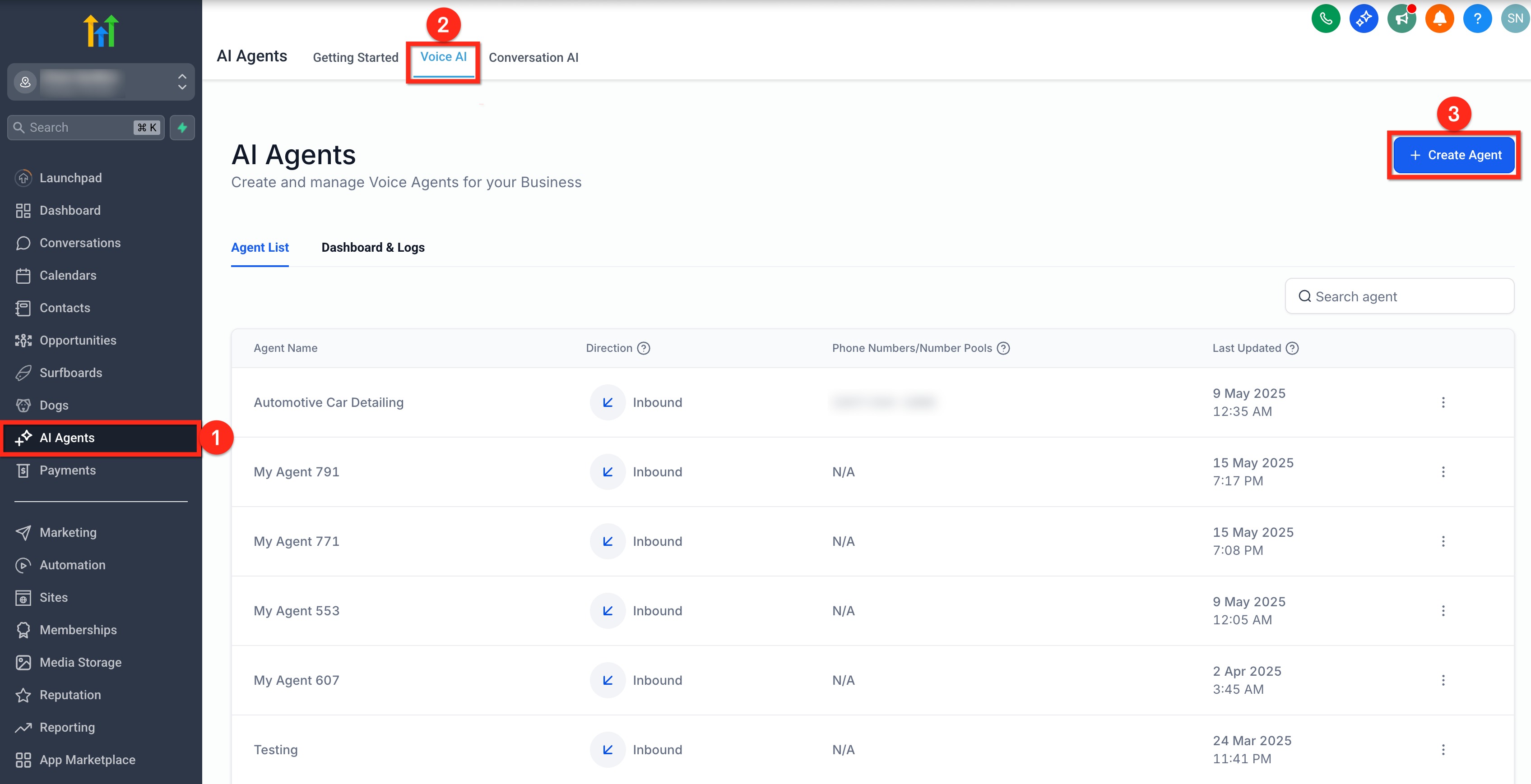 From your HighLevel sub-account, click AI Agents in the main navigation.