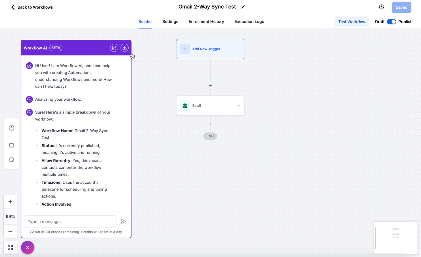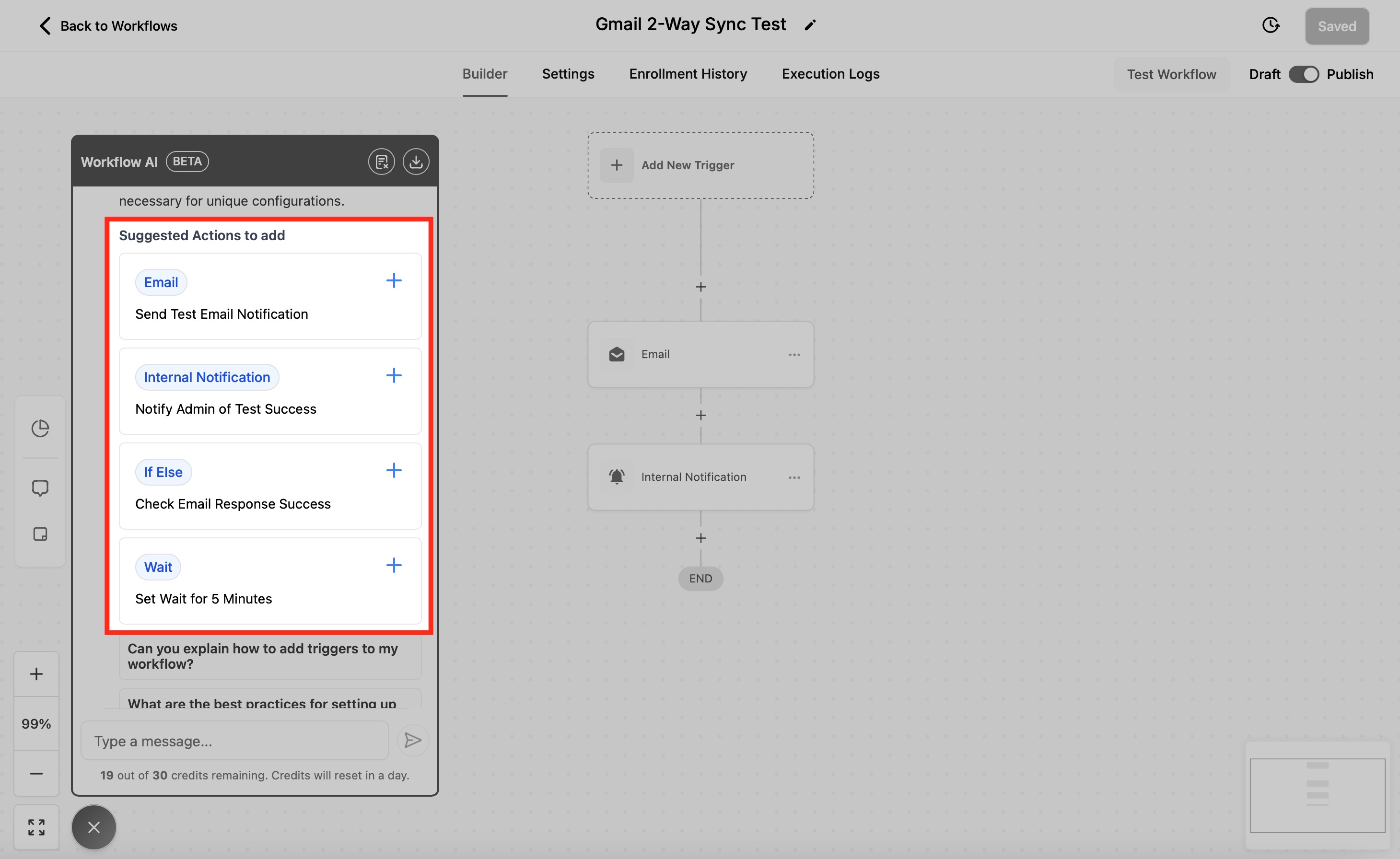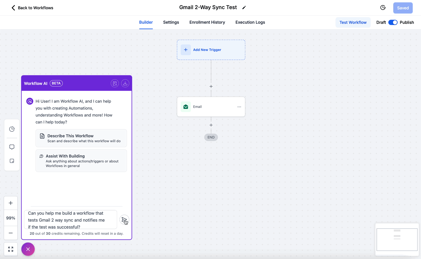 DID YOU KNOW? Workflow AI will also help you configure the triggers and actions you're adding the workflow! Just tell Workflow AI your end goal and it will guide you through the implementation!