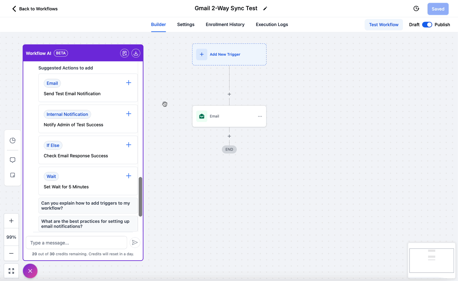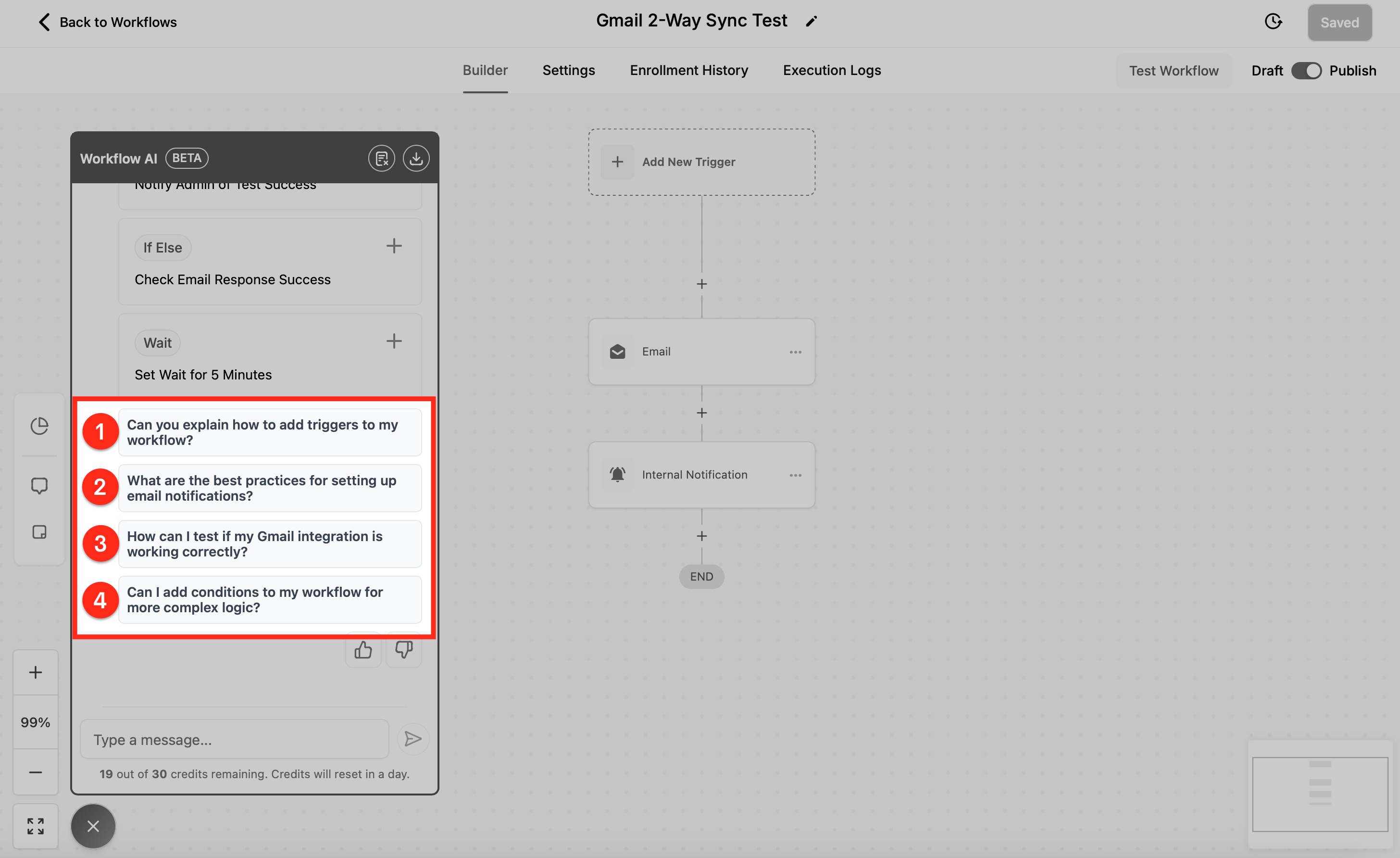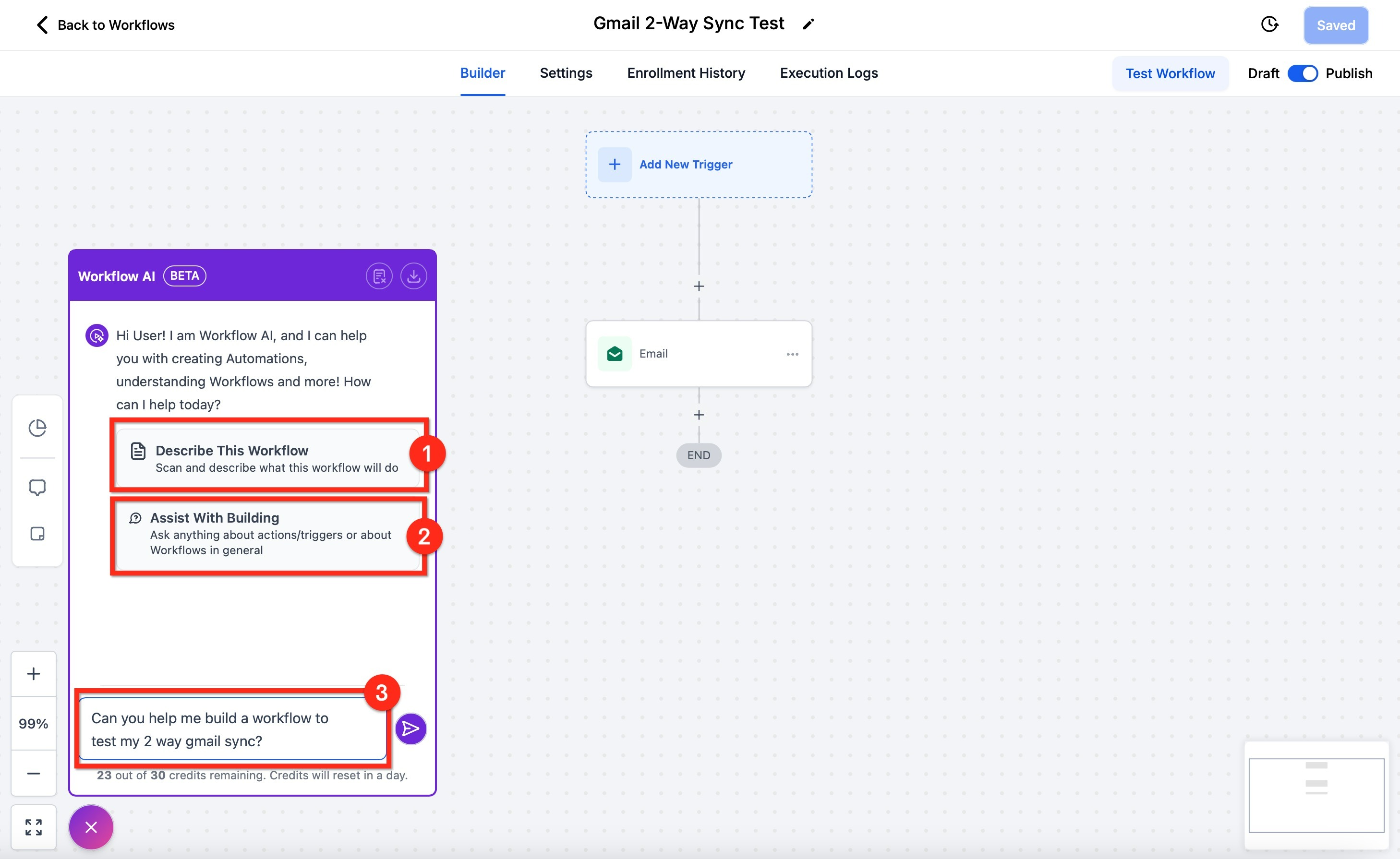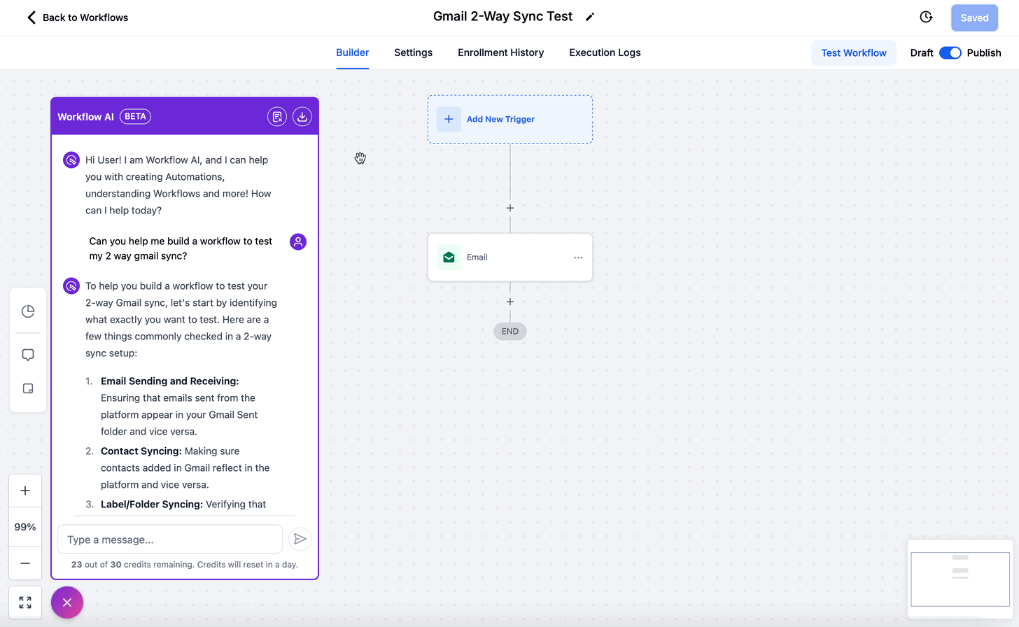 DID YOU KNOW? Workflow AI will also help you configure the triggers and actions you're adding the workflow! Just tell Workflow AI your end goal and it will guide you through the implementation!