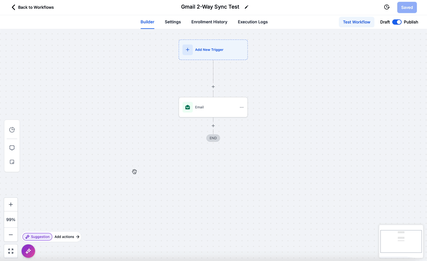 To add the suggested action or trigger to your workflow, simply select the place where you want it to be added. The action will be added and the sidebar will be opened for configuring that specific action.