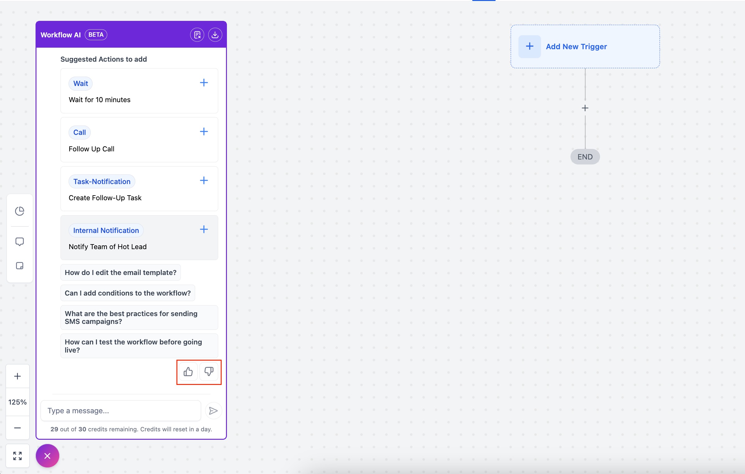 Got questions while you’re working on a workflow? You can ask Workflow AI for help with any doubts or queries—whether it’s about specific actions or general best practices.Add Actions to Your Workflow