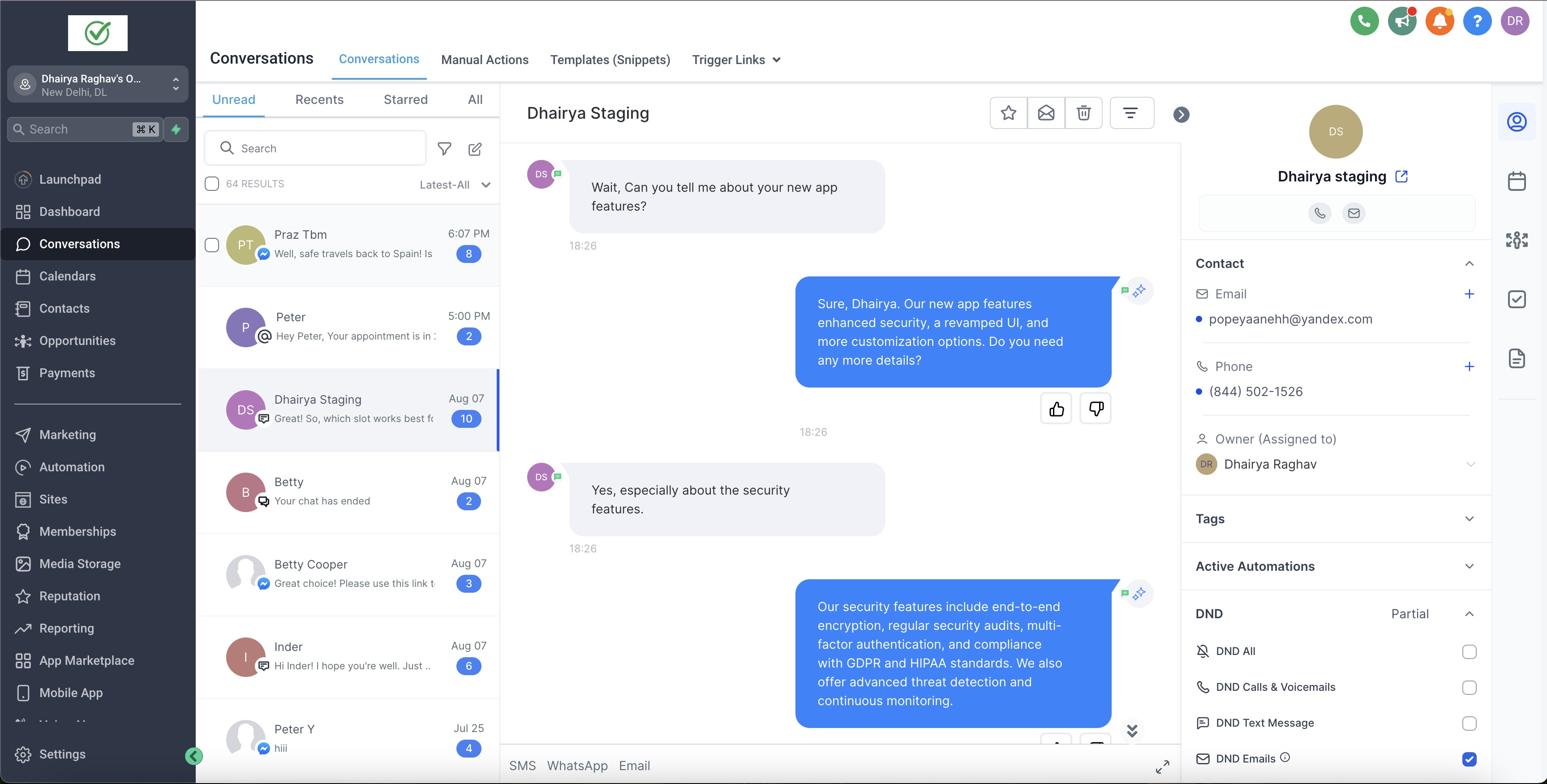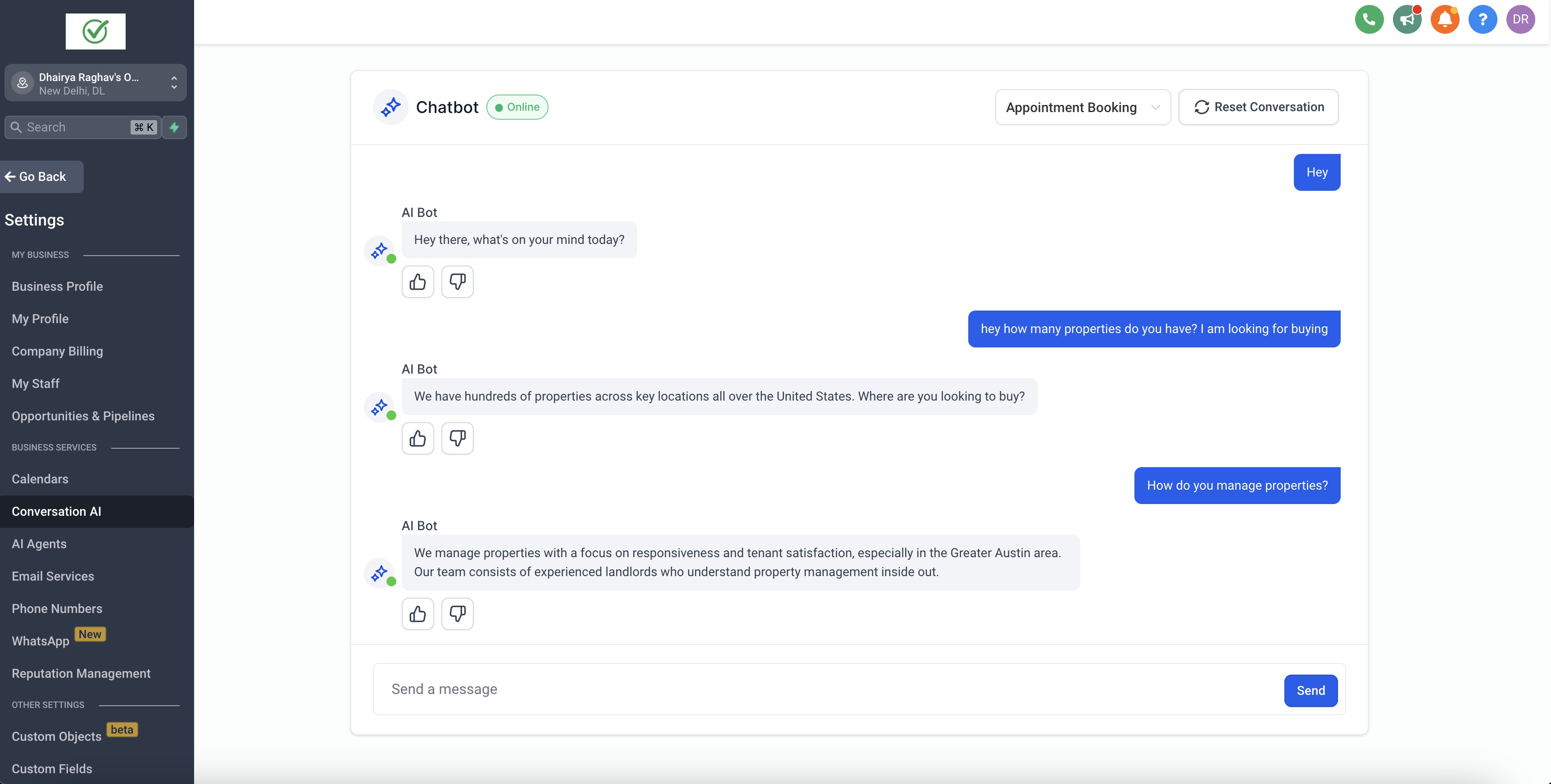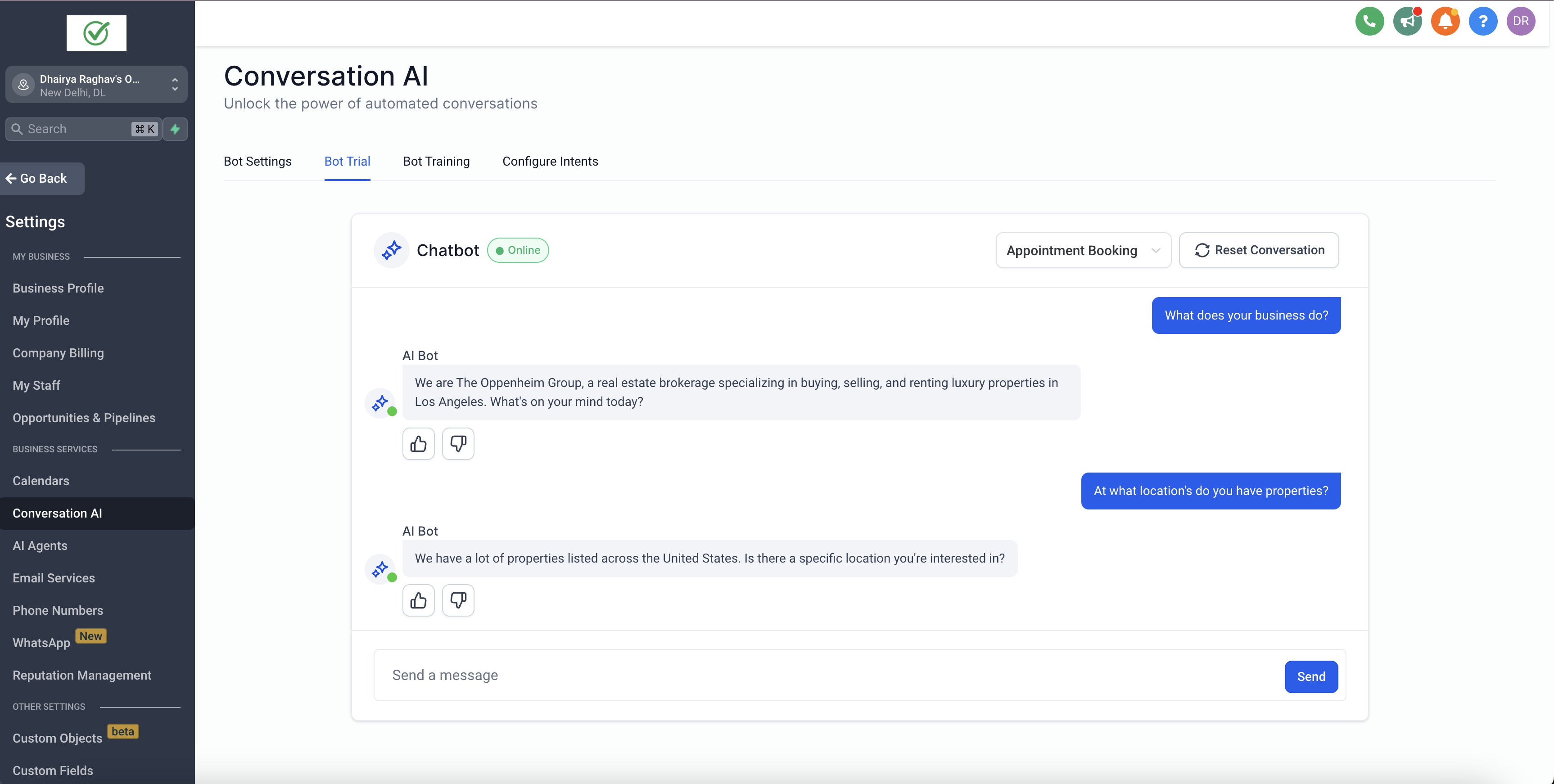 - Bot Training Utilization: Uses specific bot training data from your sub-account to give tailored responses to the identified queries.