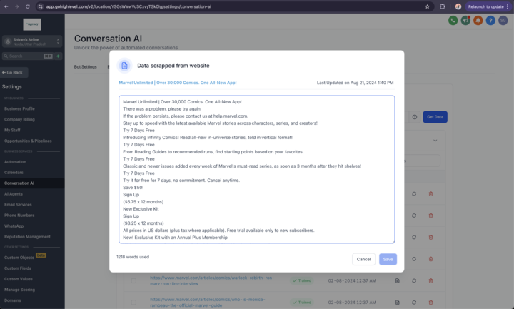 We’ve added a new feature that simplifies the review and editing of data scraped from websites during Bot Training. This update enables users to better understand the collected information and provides the ability to easily make necessary changes.