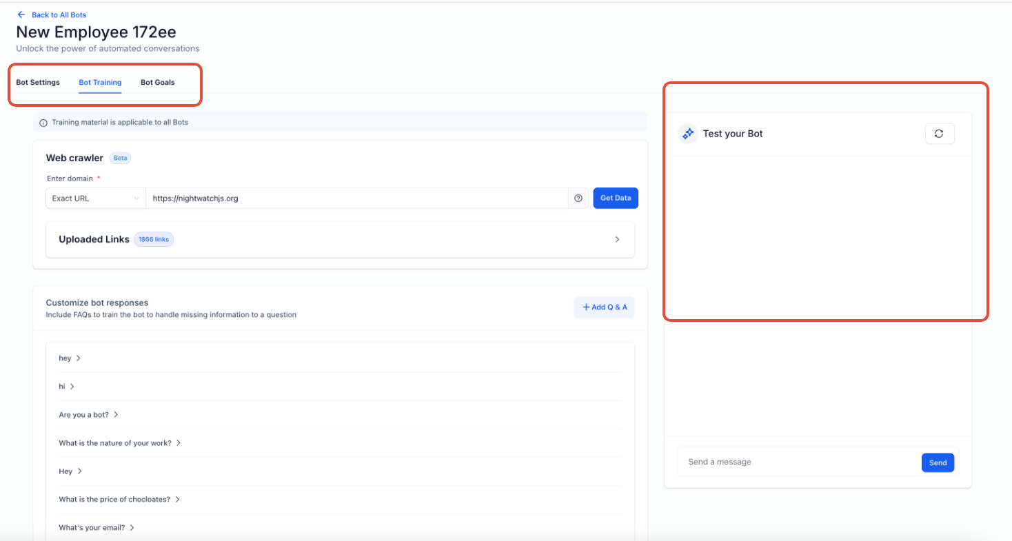 Additionally, the former Bot Trial feature has been integrated under the name Test Your Bot, providing a unified experience within the Bot Goals feature.