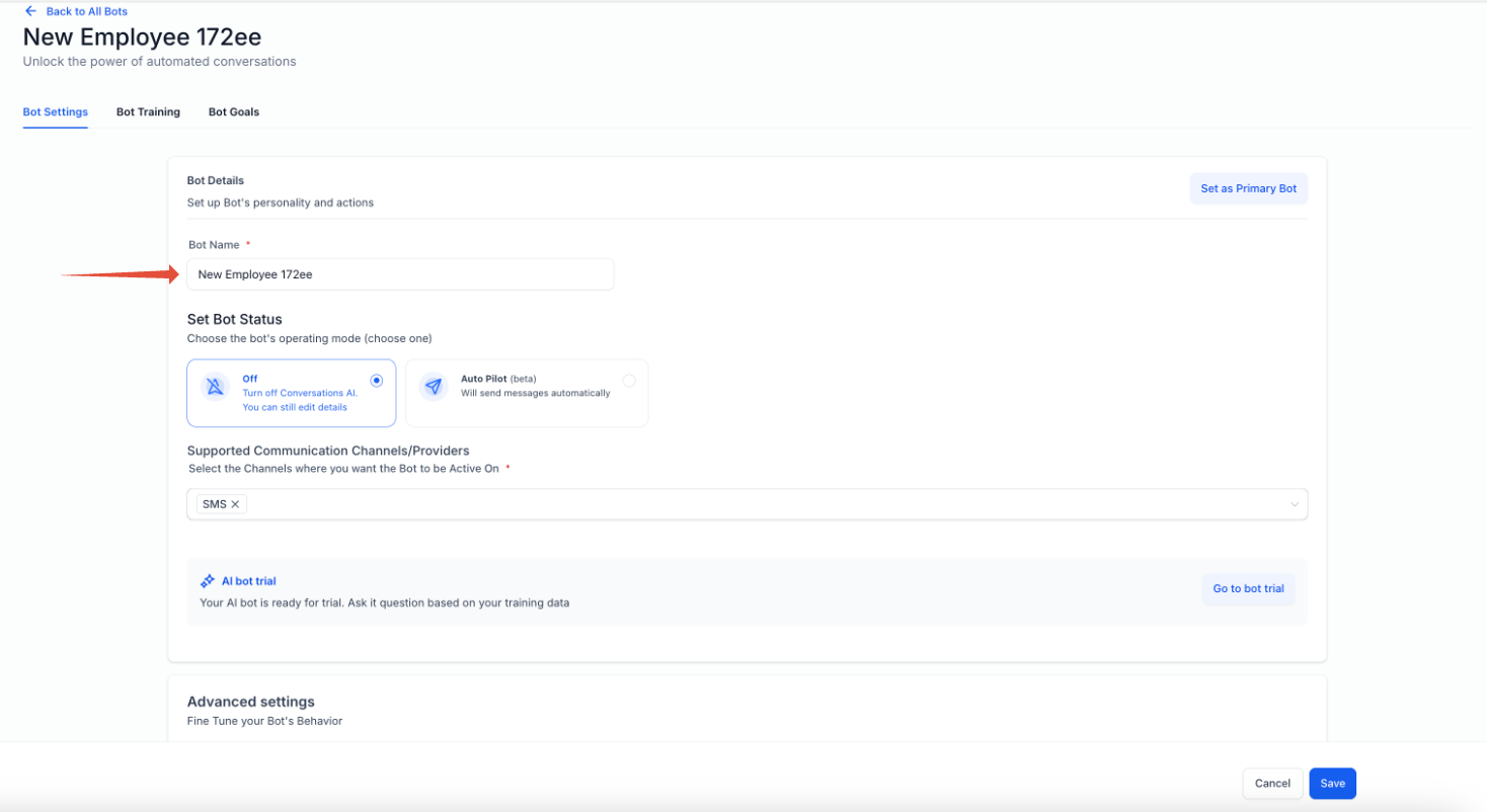 - Bot Training: Similar to Bot Settings, there are no changes to this section.
