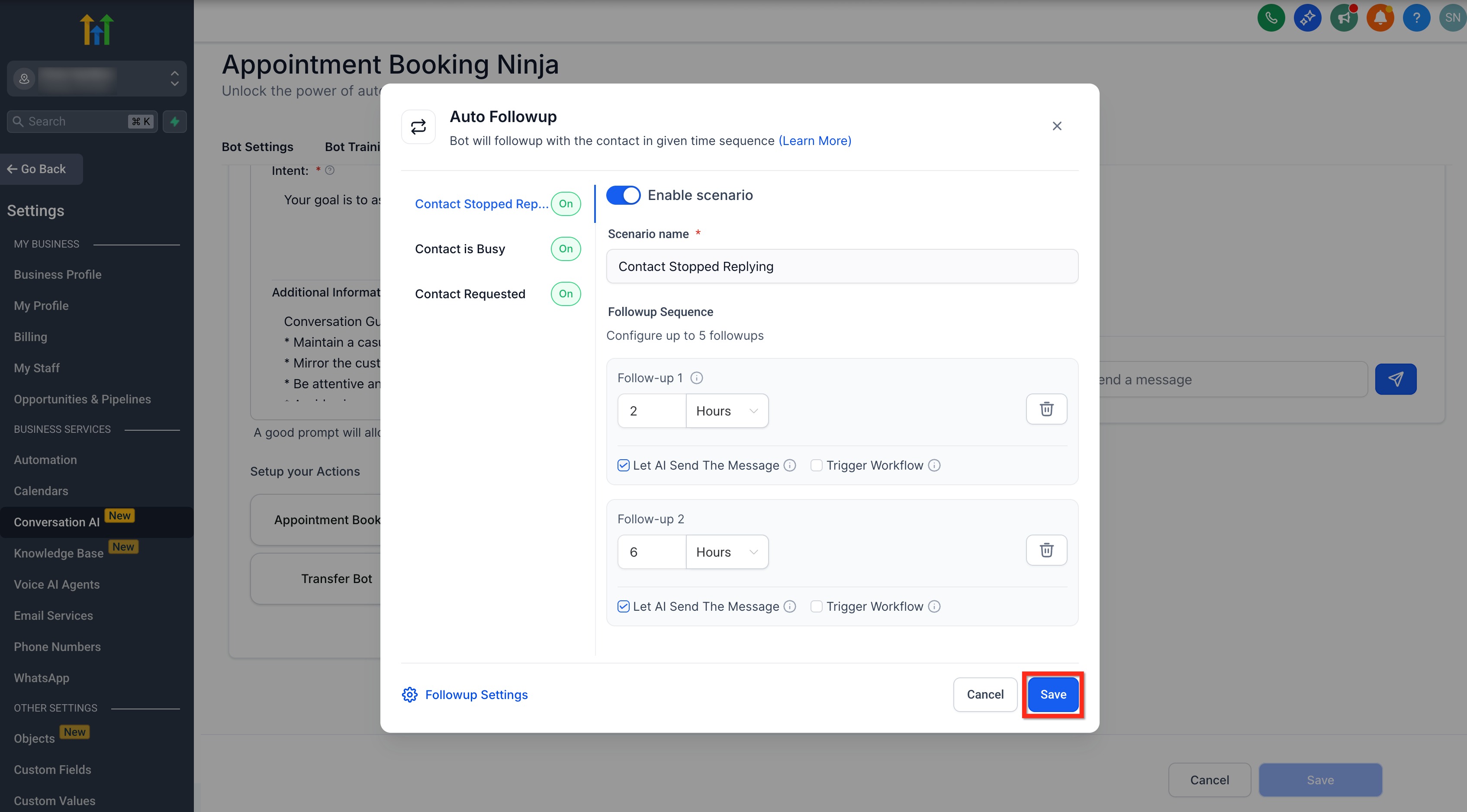 Proper setup of Auto Follow-Up ensures your Conversation AI bot can re-engage leads effectively and in alignment with your business needs. Follow these steps to enable and configure Auto Follow-Up: