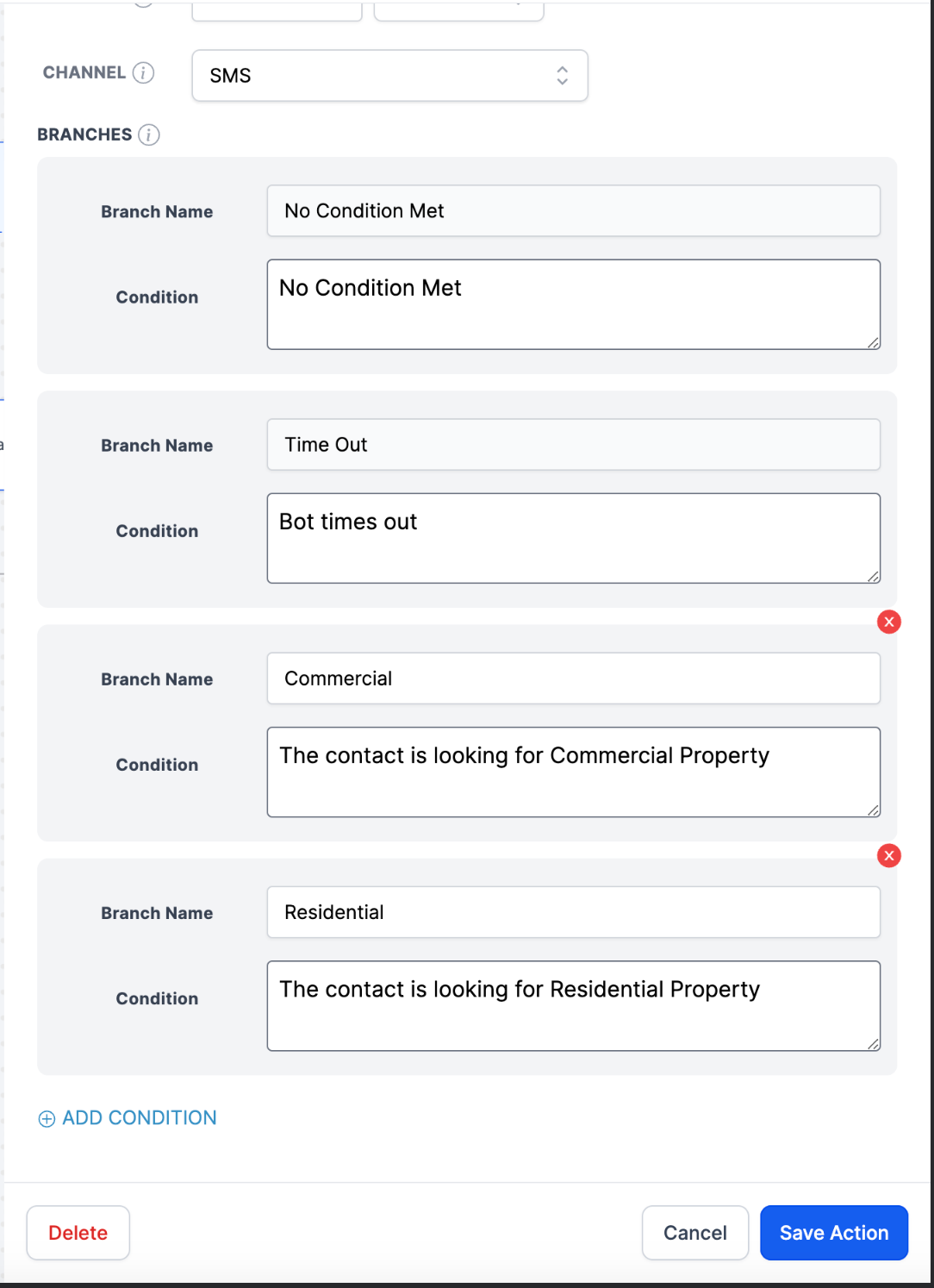 • Each Branch needs to have a Name and a Condition based on which the contact will go down that branch