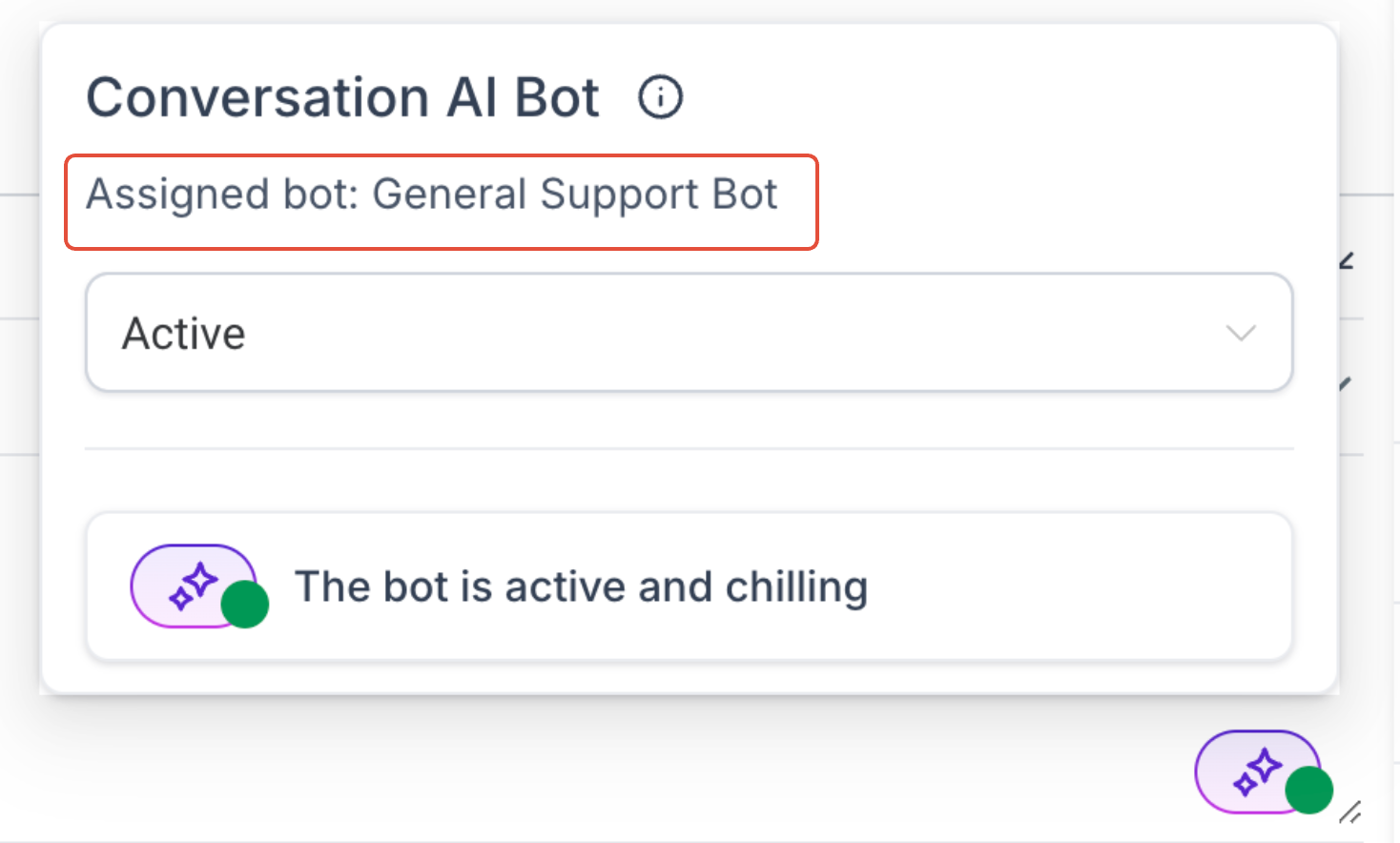 After a bot is assigned you can see the assigned bot to contact in conversation tab