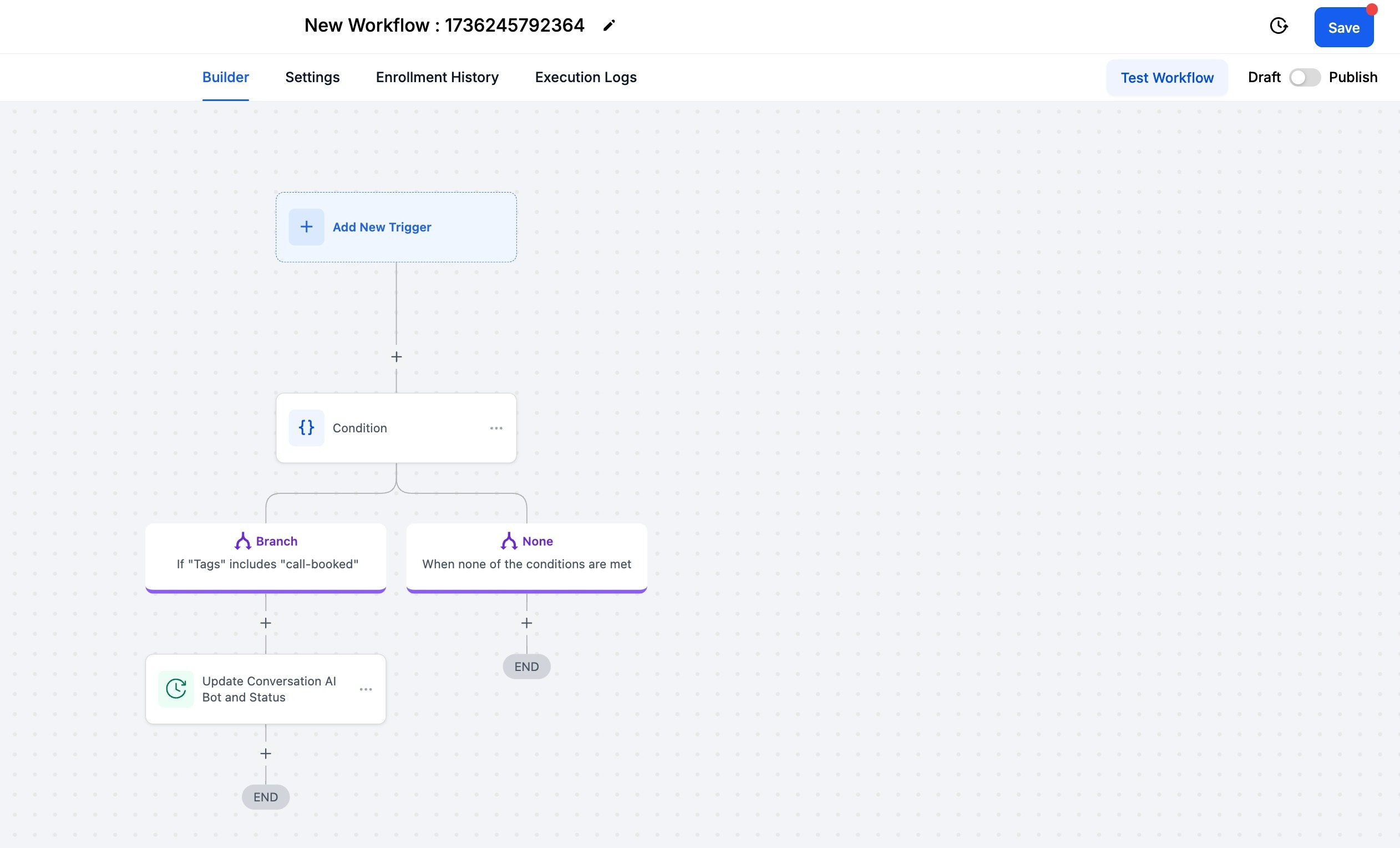 2. Select the trigger, e.g., Contact added with Tag: Call Booked.