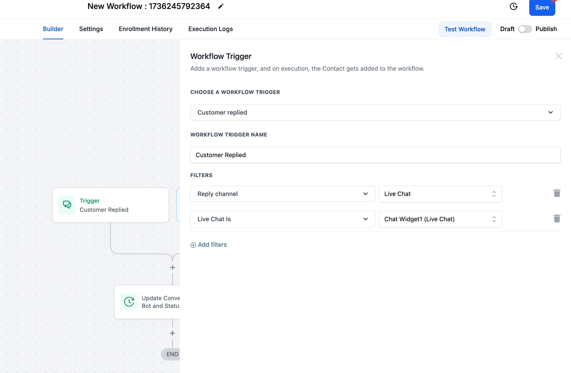 By automating bot assignments and status changes, this feature eliminates the need for manual updates, saving time and improving workflow efficiency.