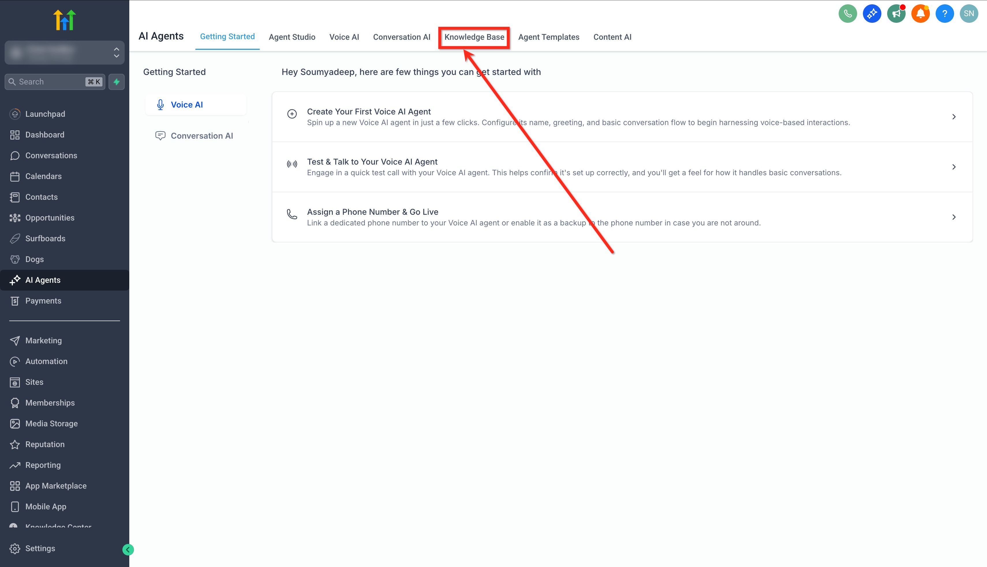 - From the left‑hand menu, click on the AI Agents tab.