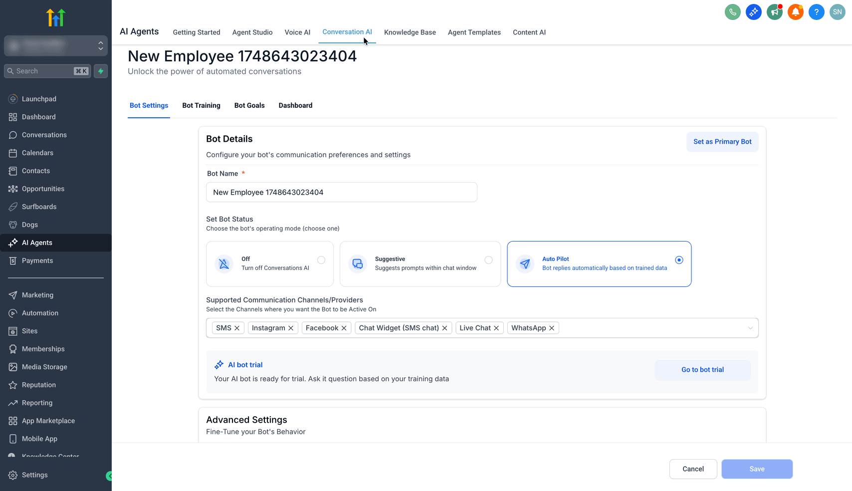 - In AI Agents, click Conversation AI.