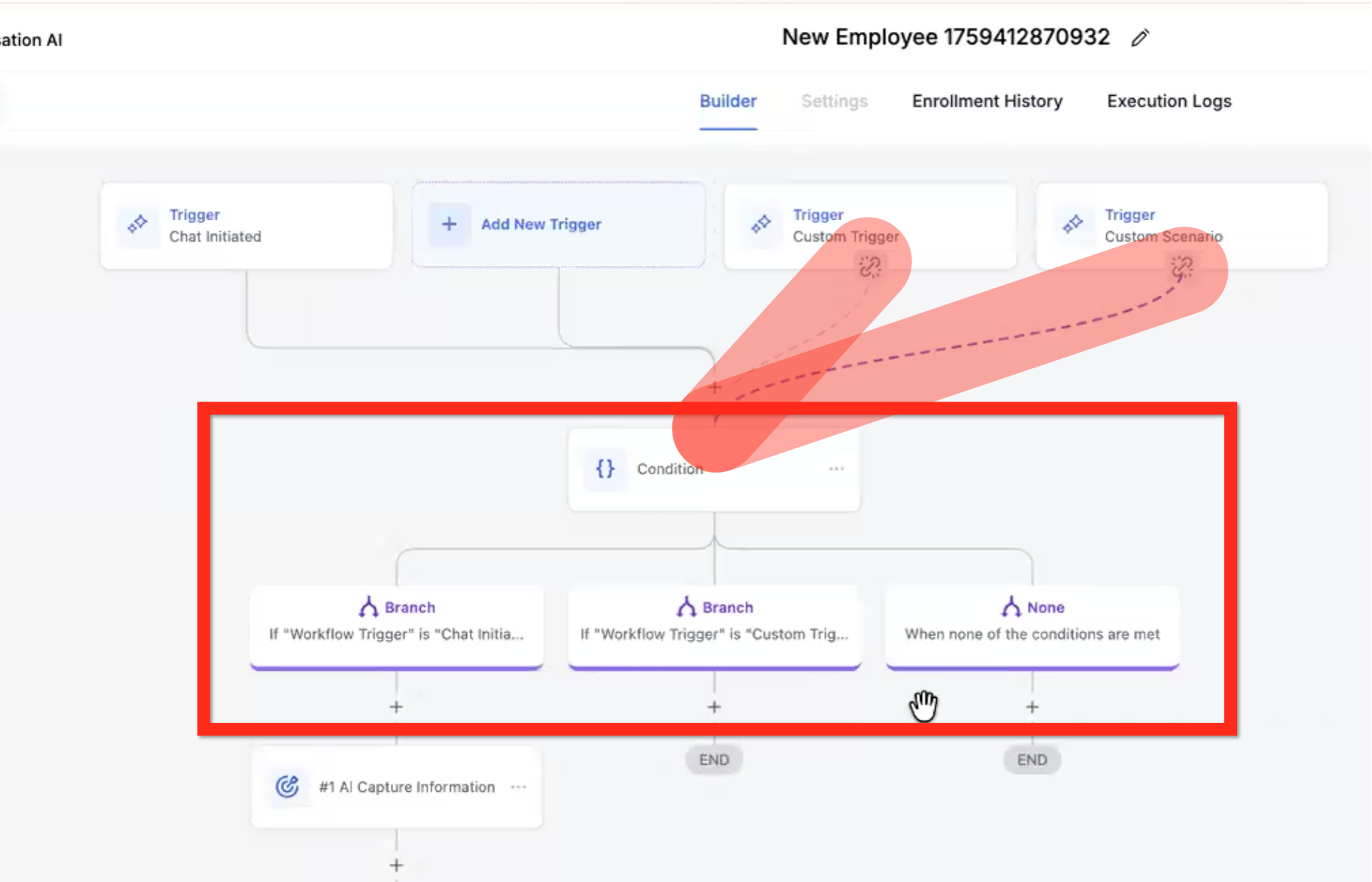 • Branch Workflow Trigger is Custom Trigger 2 - Follow this path if Custom Trigger 2 was fired.