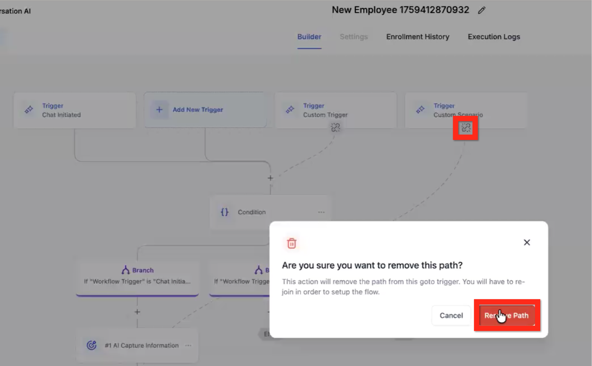 2. In the modal, click the Remove Path button.