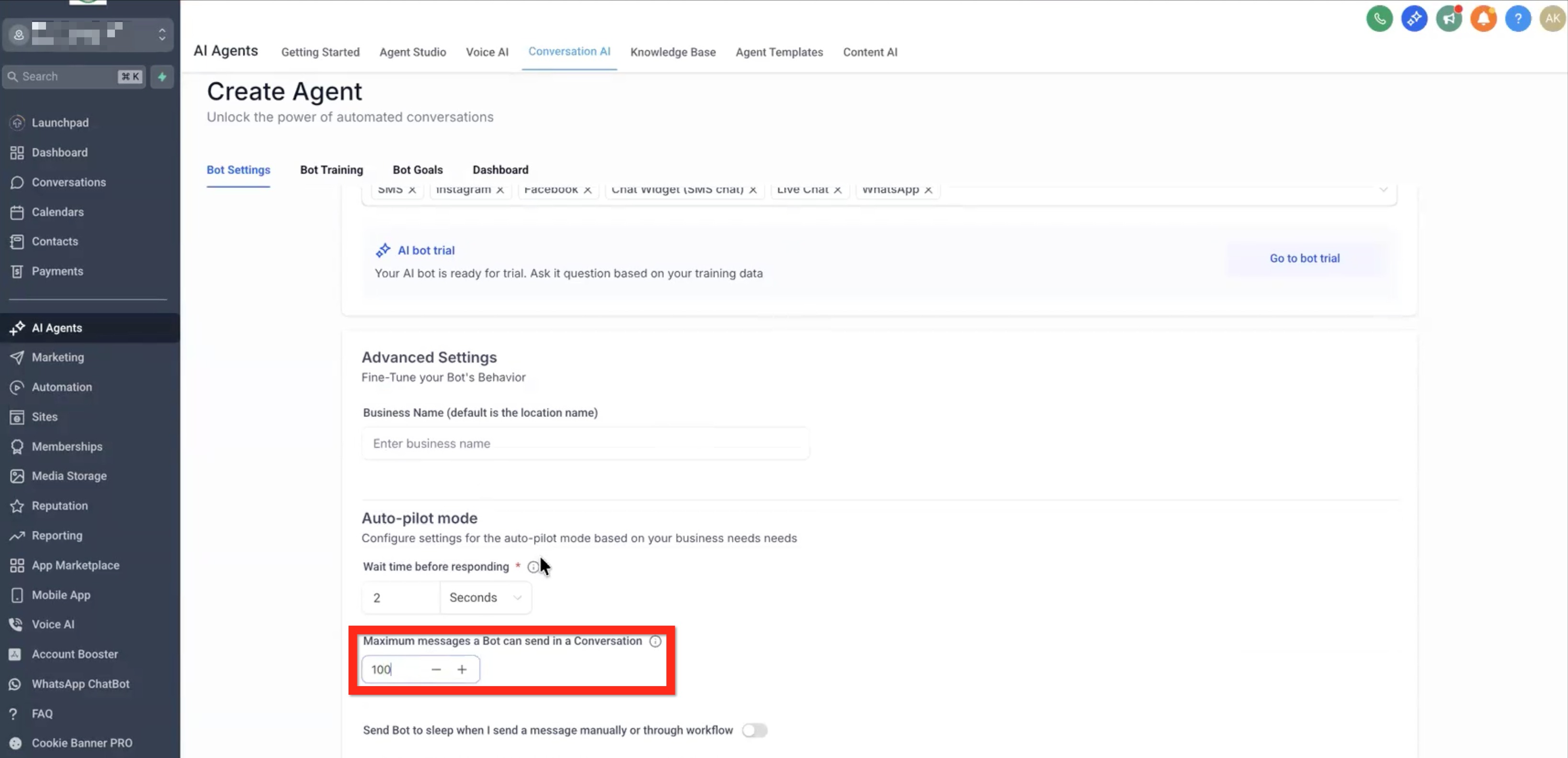 On the Bot Settings Tab: