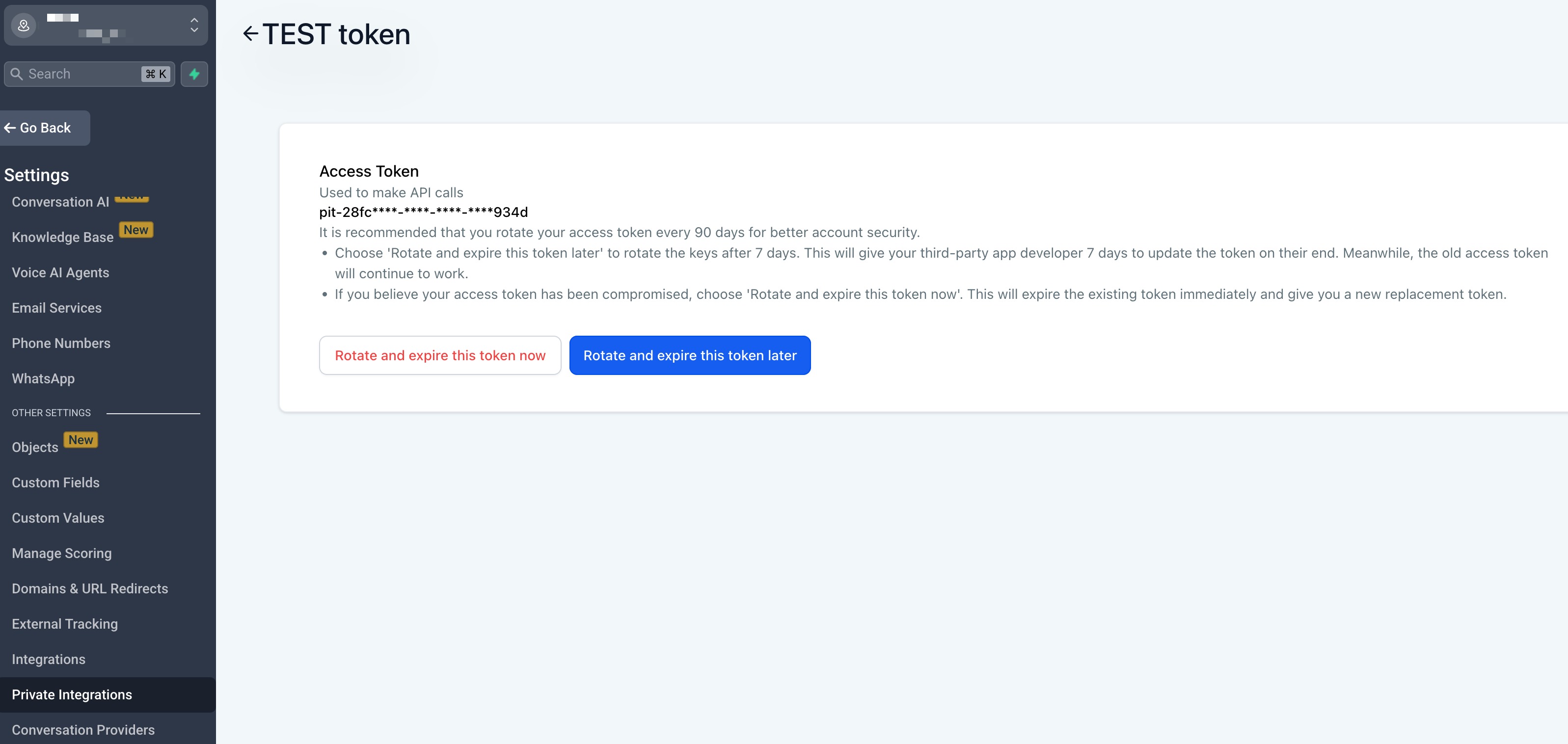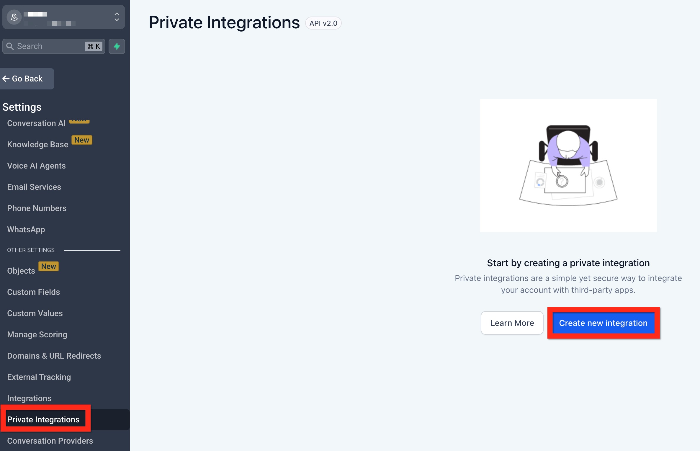 Open Settings → Private Integrations in your HighLevel sub‑account (location).